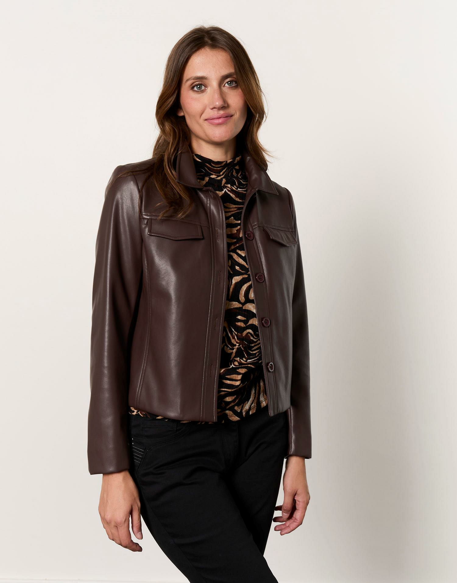 Adoptez l’élégance moderne avec cette veste courte unie marron signée RIU Paris. Sa coupe précise et son effet similicuir révèlent une allure affirmée, idéale pour sublimer toutes vos tenues.