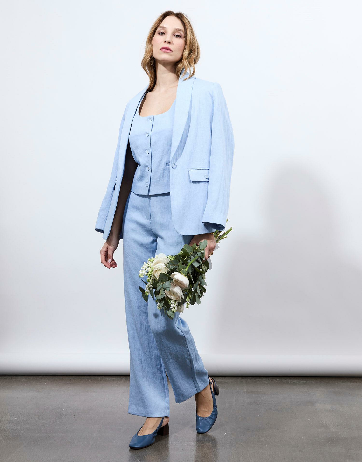 Affirmez votre style avec cette veste tailleur bleu ciel, une pièce essentielle pour sublimer vos tenues avec élégance et modernité. Sa coupe structurée et son coloris lumineux apportent une touche de fraîcheur à votre dressing.