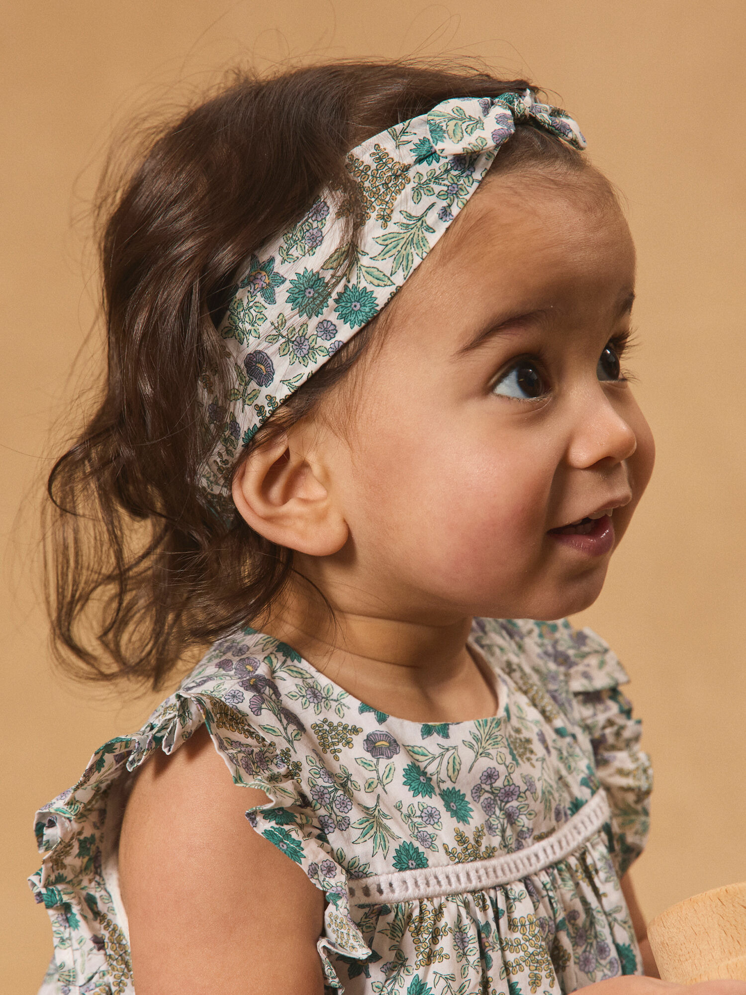 Imprimé fleuri sur fond écru, nœud décoratif sur le devant, élastique à l’arrière pour un ajustement confortable. Ce produit fait partie de la collection Vert de Tilleuil. Pour plus d’informations sur ses qualités et caractéristiques environnementales, consultez la fiche produit dédiée.