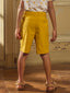 Ce bermuda est-il facile à assortir ? Sa couleur jaune lumineuse se marie parfaitement avec des tons neutres ou des imprimés discrets.