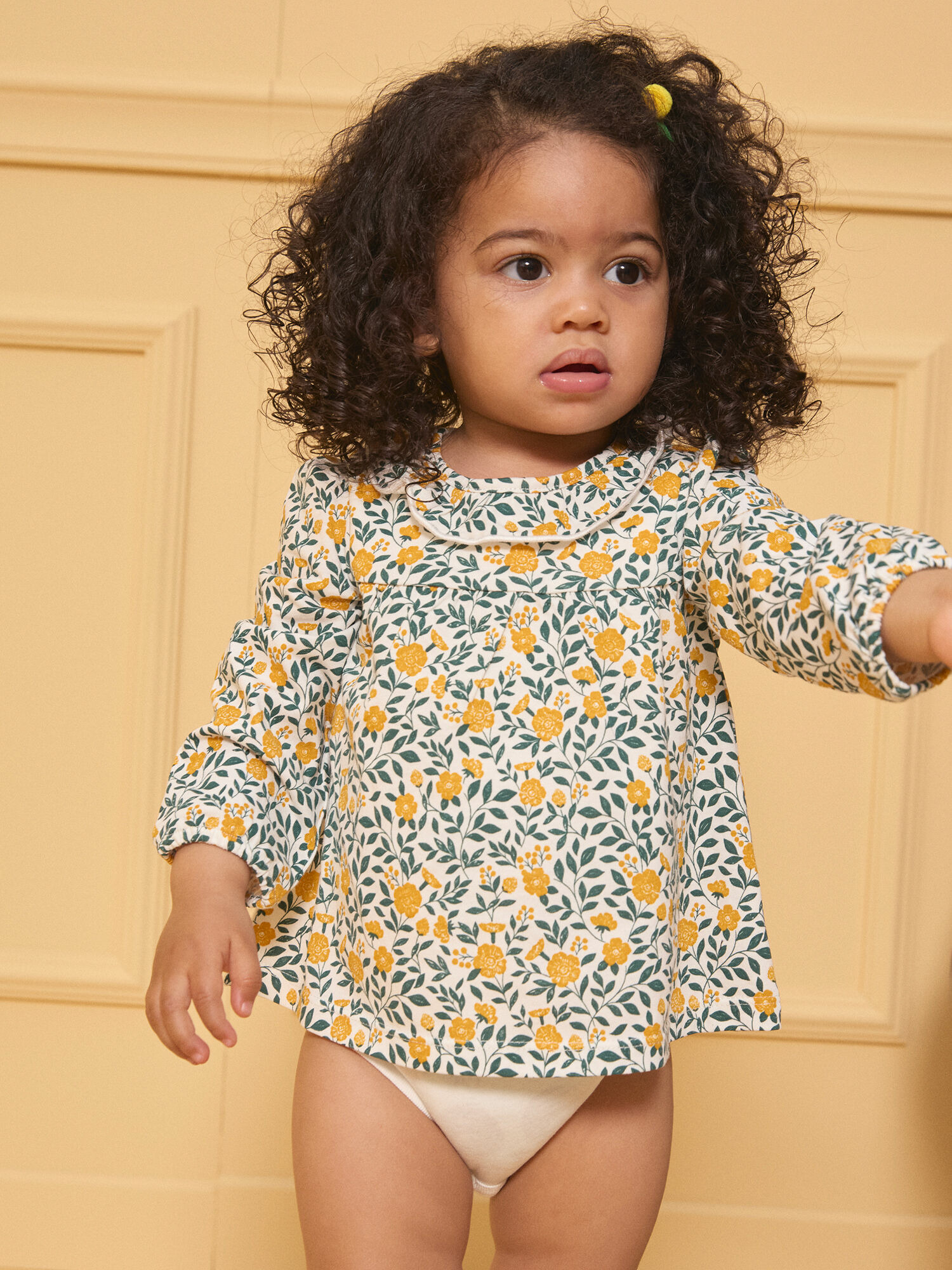Sublimez chaque instant avec cette blouse body imprimée fleuri, alliant élégance et praticité. Son motif vert sombre et jaune miel sur fond écru apporte une touche naturelle et raffinée à votre garde-robe.