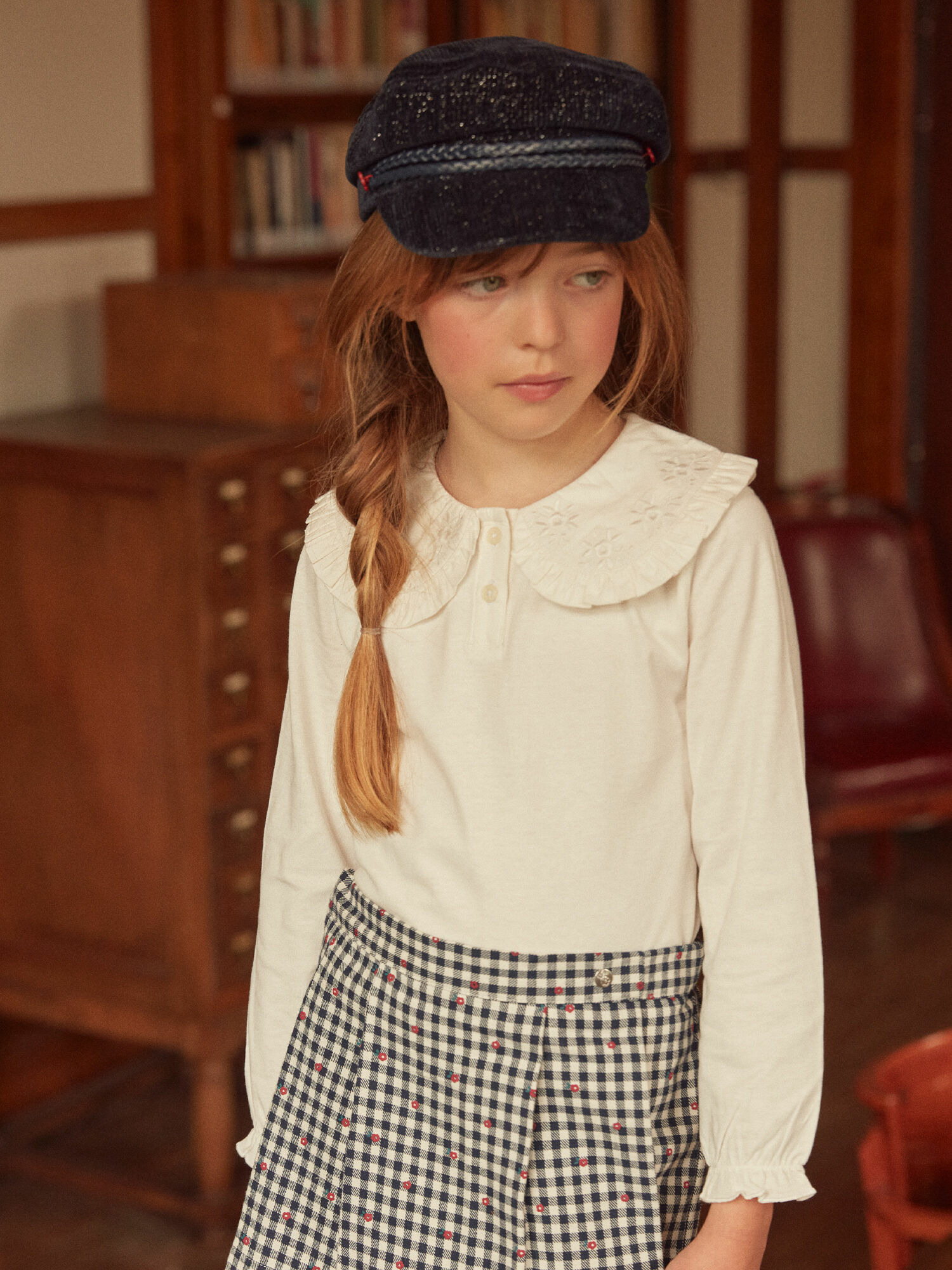 Cette blouse se distingue par son col claudine délicatement brodé de motifs floraux, apportant une note poétique et féminine. Les bas de manches élastiqués assurent un confort optimal tout en ajoutant une finition soignée. Idéale pour les occasions spéciales, elle s’intègre parfaitement à la garde-robe enfantine pour un look chic et spontané.