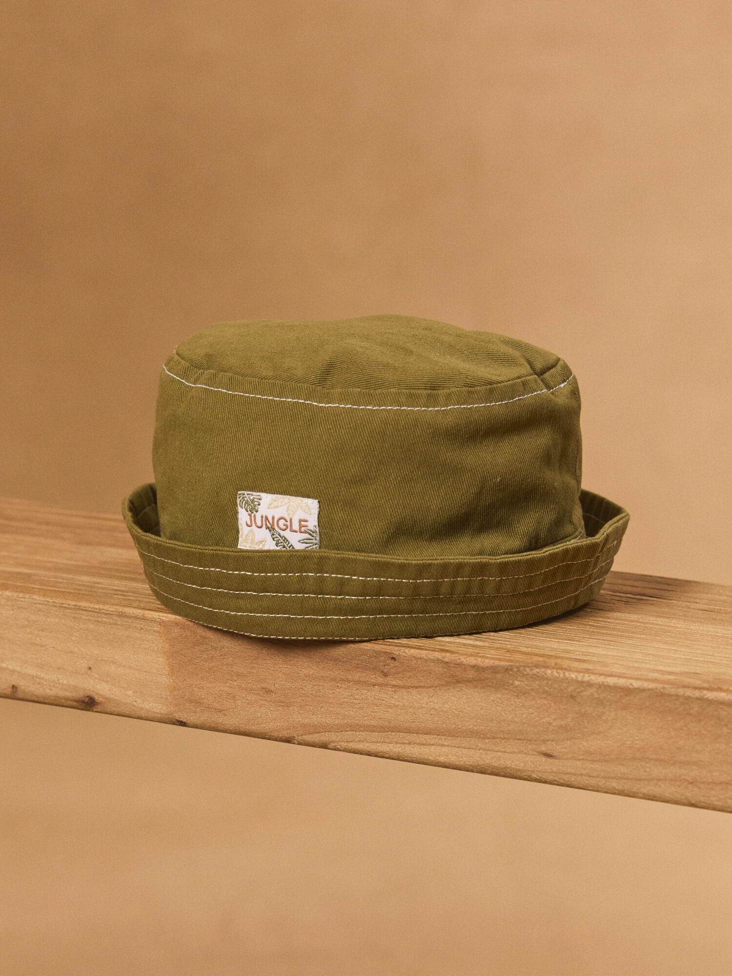 Conçu pour allier confort et style, ce bob se distingue par son rabat à pression sur le devant et son patch tissé "Jungle" à l’arrière, qui apportent une touche moderne et dynamique. Le lien à nouer sous le menton garantit un maintien sûr, même lors des journées les plus actives, tout en assurant un ajustement personnalisé.