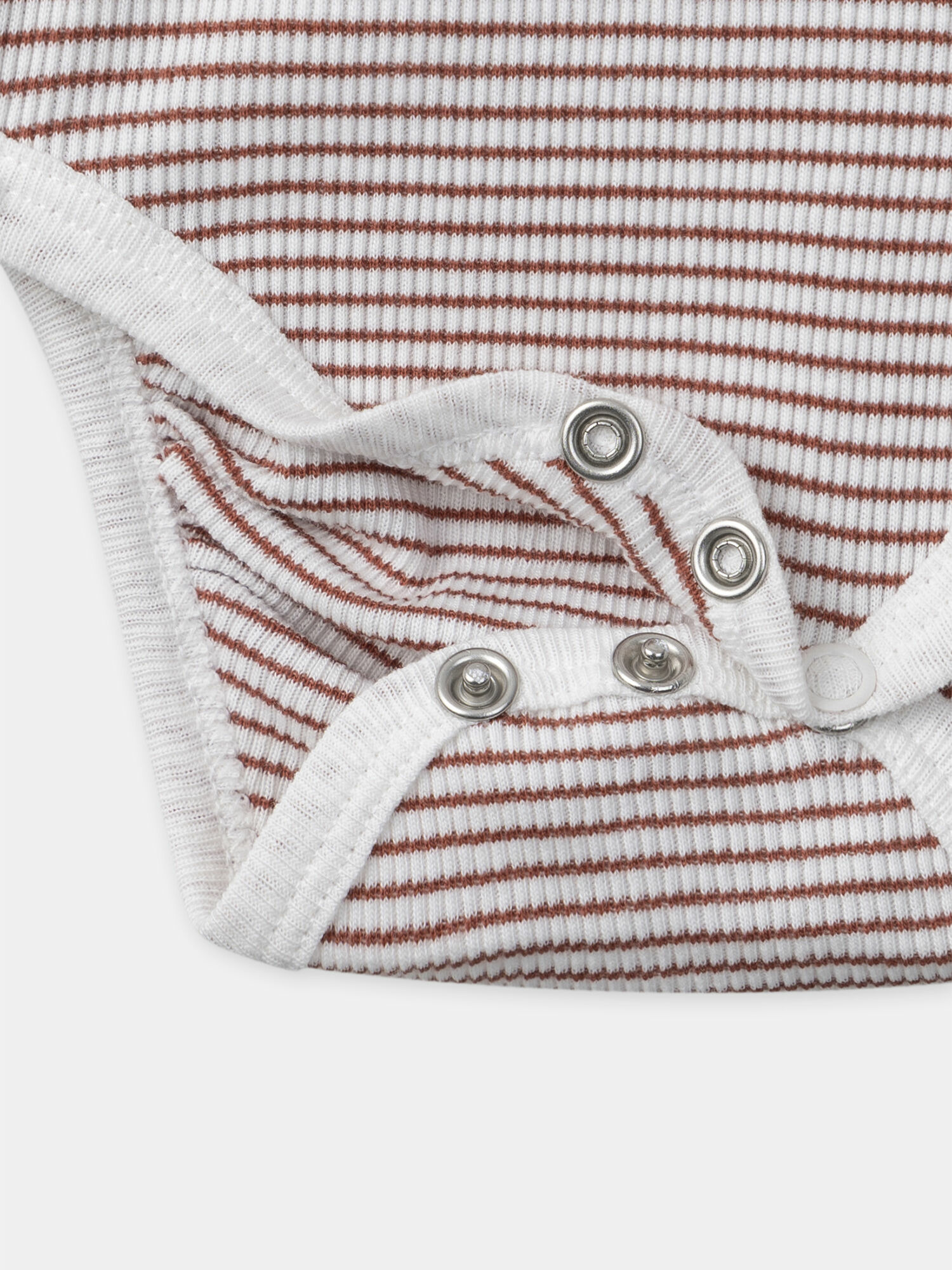 Fabriqué dans des matériaux respectueux de l’environnement, ce body appartient à la Terre de Chardons, une gamme engagée pour une mode plus responsable. Il se compose d’un tissu rayé terracotta et écru, avec un col Claudine brodé, et des boutons à pression au dos et à l’entrejambe pour un usage pratique.