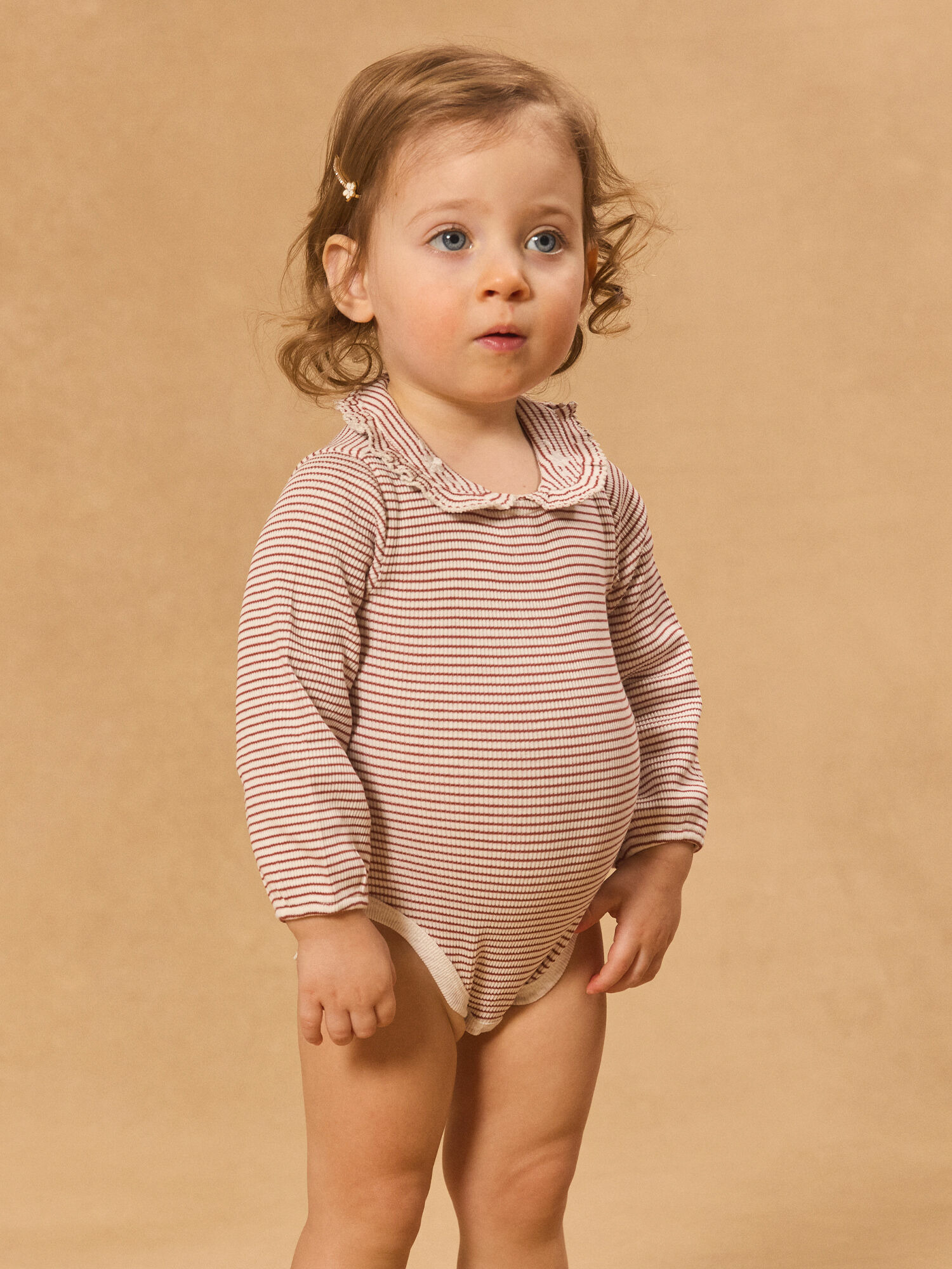 Offrez à votre petite fille un vêtement alliant douceur et style avec ce body à manches longues rayé terracotta et écru. Son design élégant et ses finitions soignées en font une pièce incontournable pour un look raffiné au quotidien.