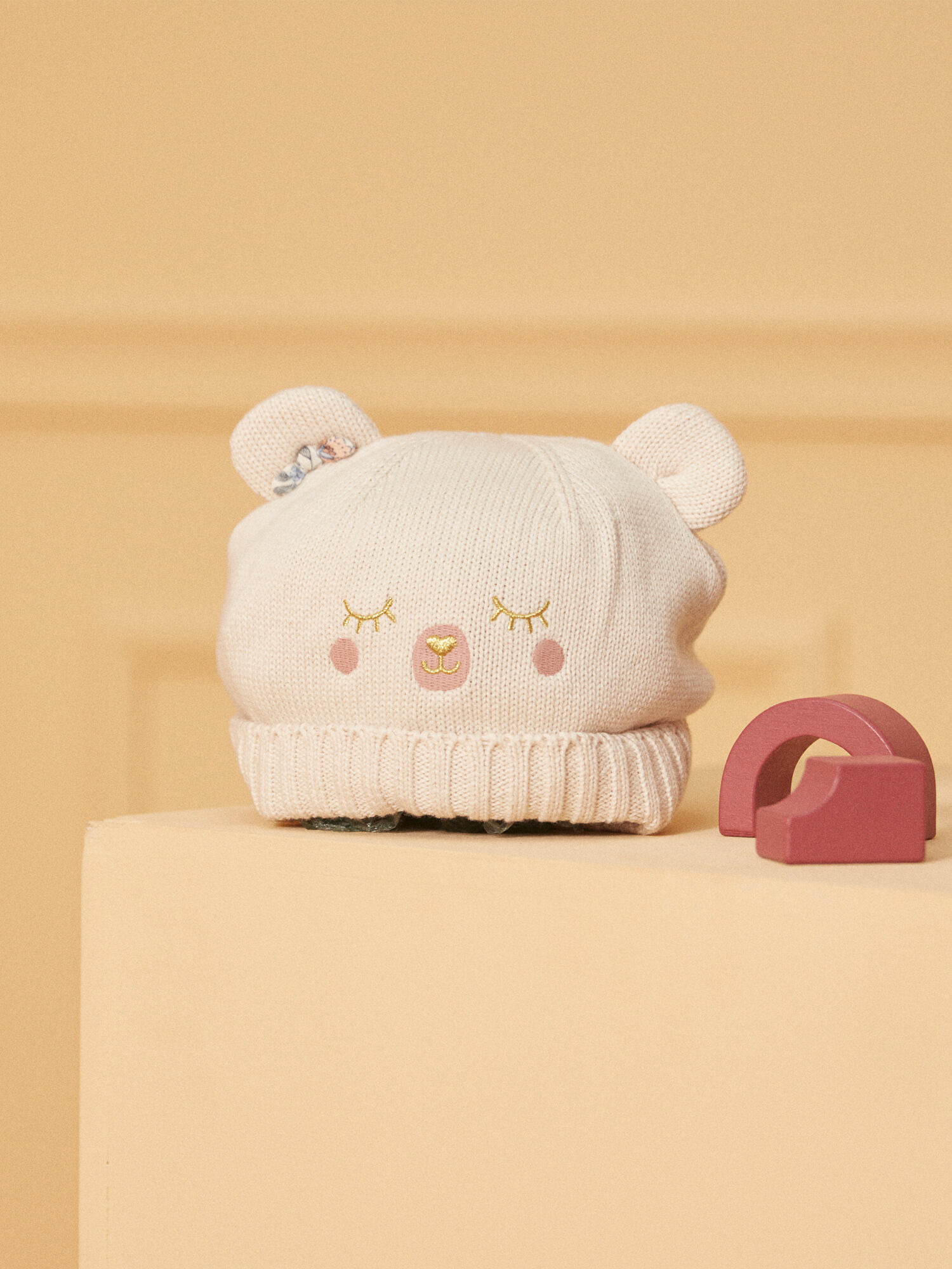 Bonnet écru avec broderie visage d’ourson. Oreilles en relief en 3D pour un effet ludique. Lien à nouer sous le menton pour un maintien parfait. Référence produit : LIMELINA / 24H4BF62BON005. Intégré à la Collection Manteaux, Vestes & Parkas. Informations environnementales disponibles sur la fiche produit.