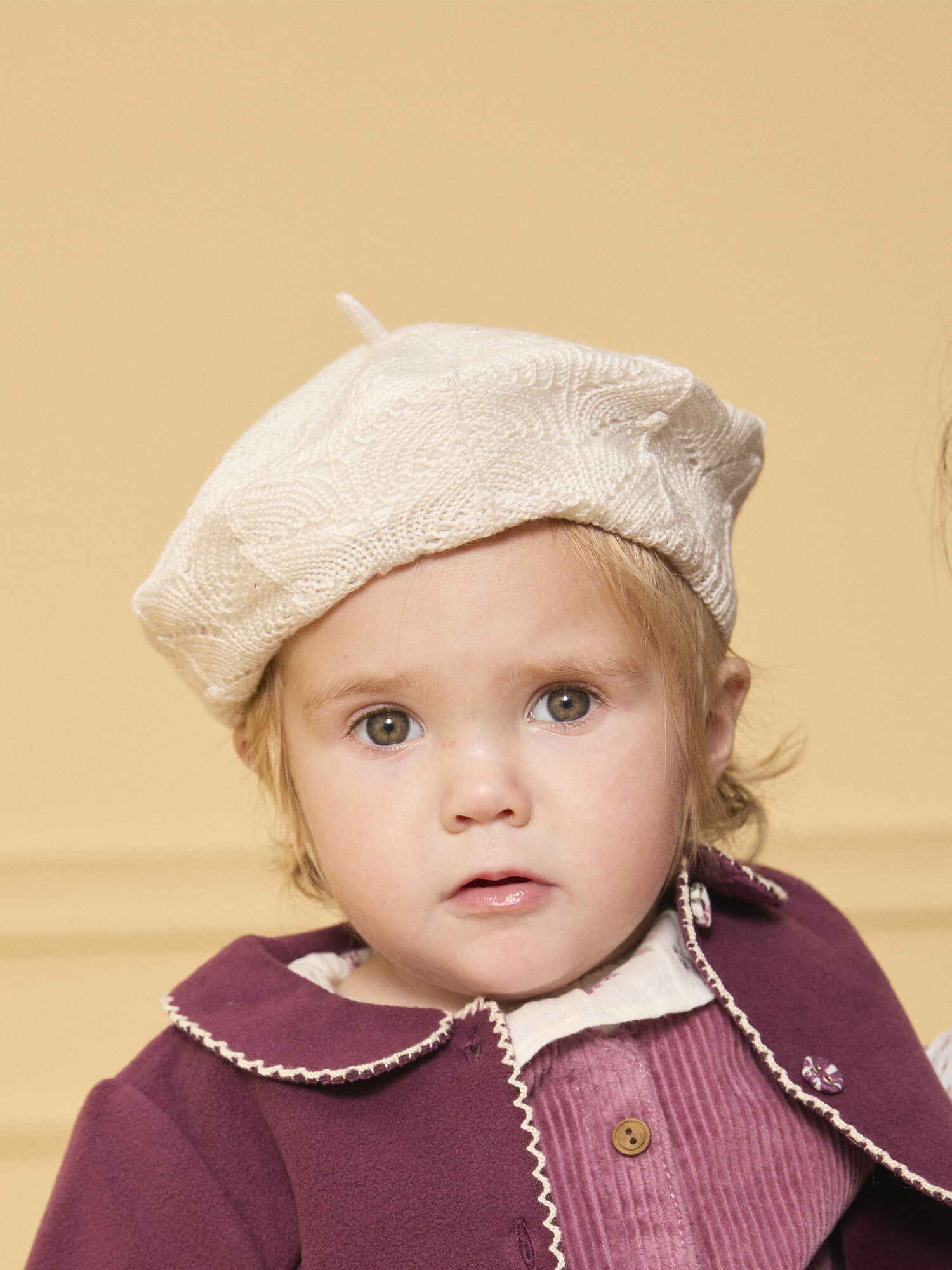 Béret en maille ajourée coloris écru chiné, doublure intérieure en jersey pour un confort optimal. Produit issu de la Collection Chouquette à Paris, taille T5. Référence : LAJENIFER / 24H4BFM1BON006.
