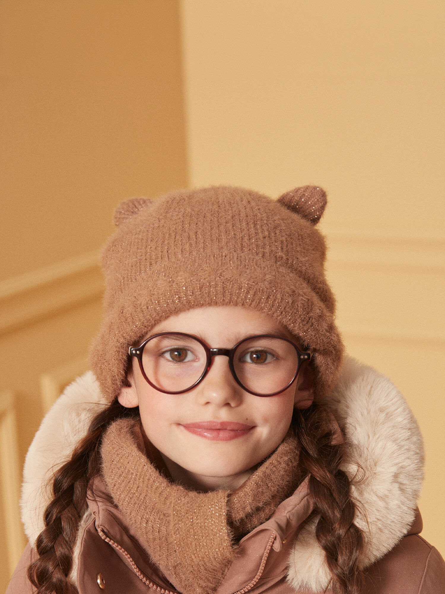 Ce bonnet marron est réalisé en maille mélangée avec un fil doré, doté d’oreilles 3D sur le haut et d’une doublure en fine fourrure synthétique. Il intègre une boucle pratique en bas de manche pour accrocher vos gants. Référence produit : LISEKETTE / 24H4PF72BON804.