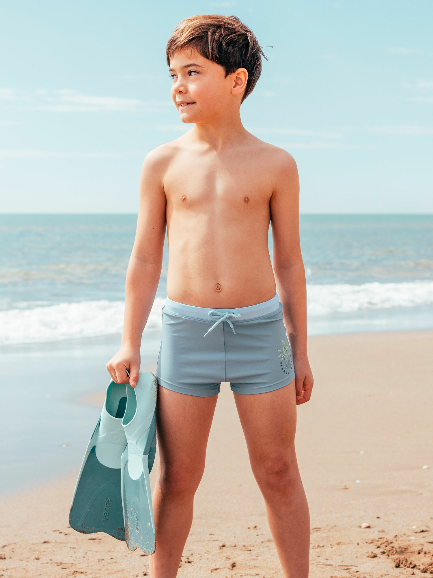 Référence MRUCAMAGE / 25E4PGC6MAI219. Ce boxer de bain bleu est doté d’un cordon ajustable à la taille et d’une impression caméléon sur palmier avec l’inscription "sergent major" sur le côté gauche. Il fait partie de la collection Plage et peut être porté avec le t-shirt assorti MRUTISHAGE. Pour plus d’informations sur ses qualités environnementales, consultez la fiche produit dédiée.