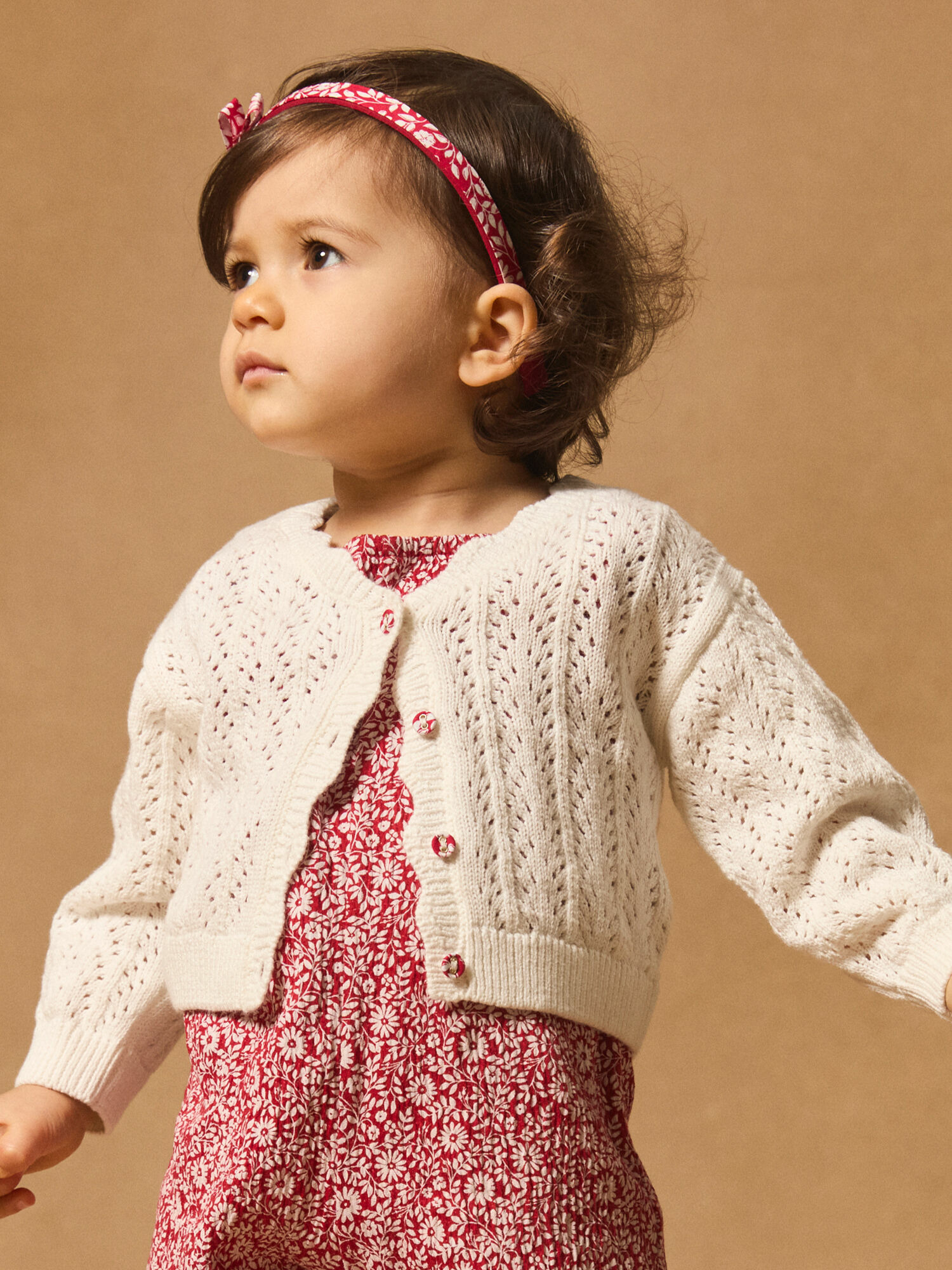 Ce cardigan se distingue par son col en V et sa finition coquille à l’avant, qui ajoutent une note subtile et féminine. L’ouverture intégrale par boutons imprimés fleuris rouges et écrus apporte une touche de couleur originale, parfaite pour égayer les journées printanières ou estivales. Léger et agréable à porter, il accompagne aisément toutes les tenues, du plus simple au plus habillé.