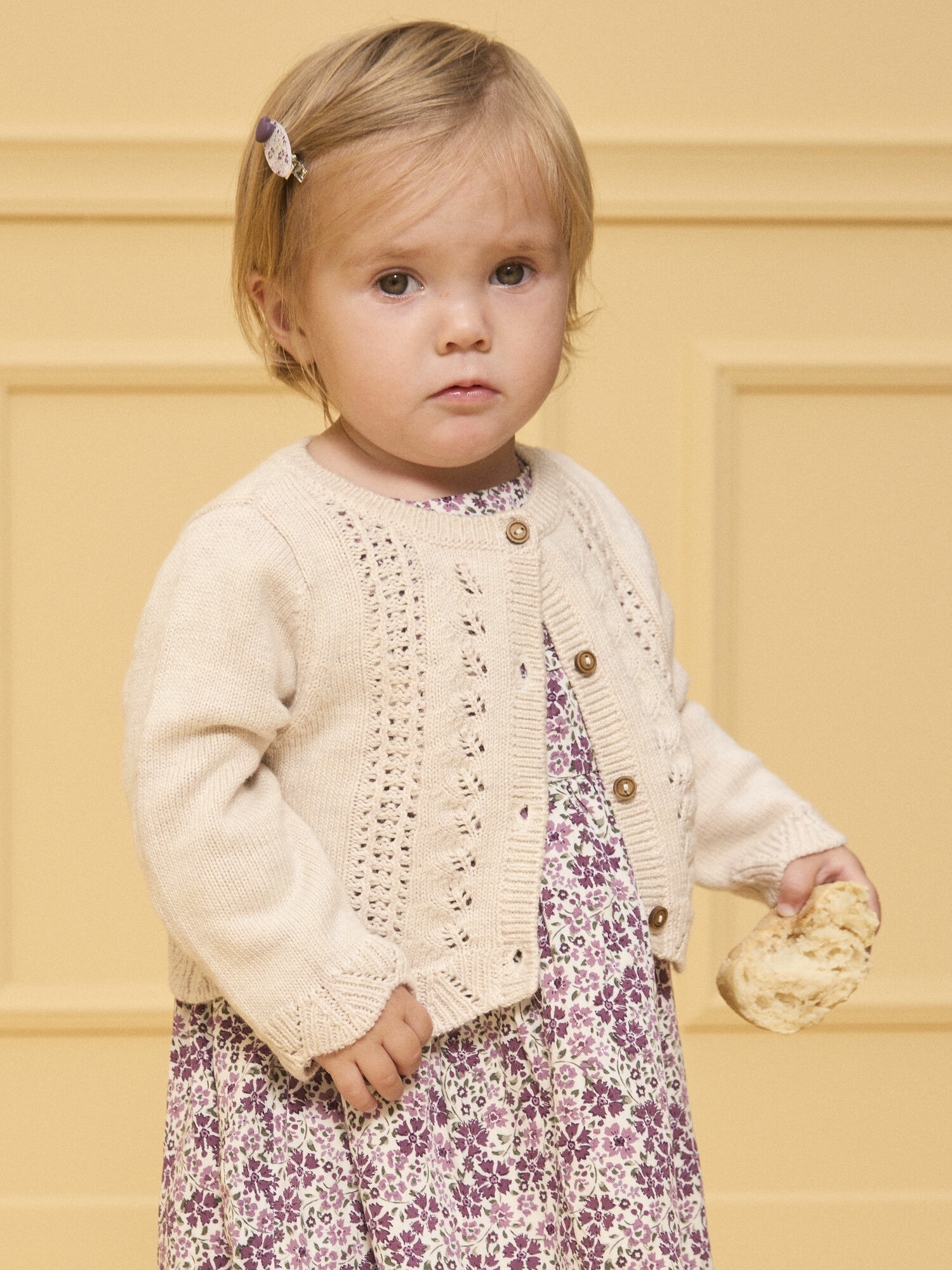 Offrez à votre petite fille un équilibre parfait entre douceur et élégance avec ce cardigan ajouré fantaisie. Une pièce délicate qui sublime chaque tenue avec naturel et raffinement.