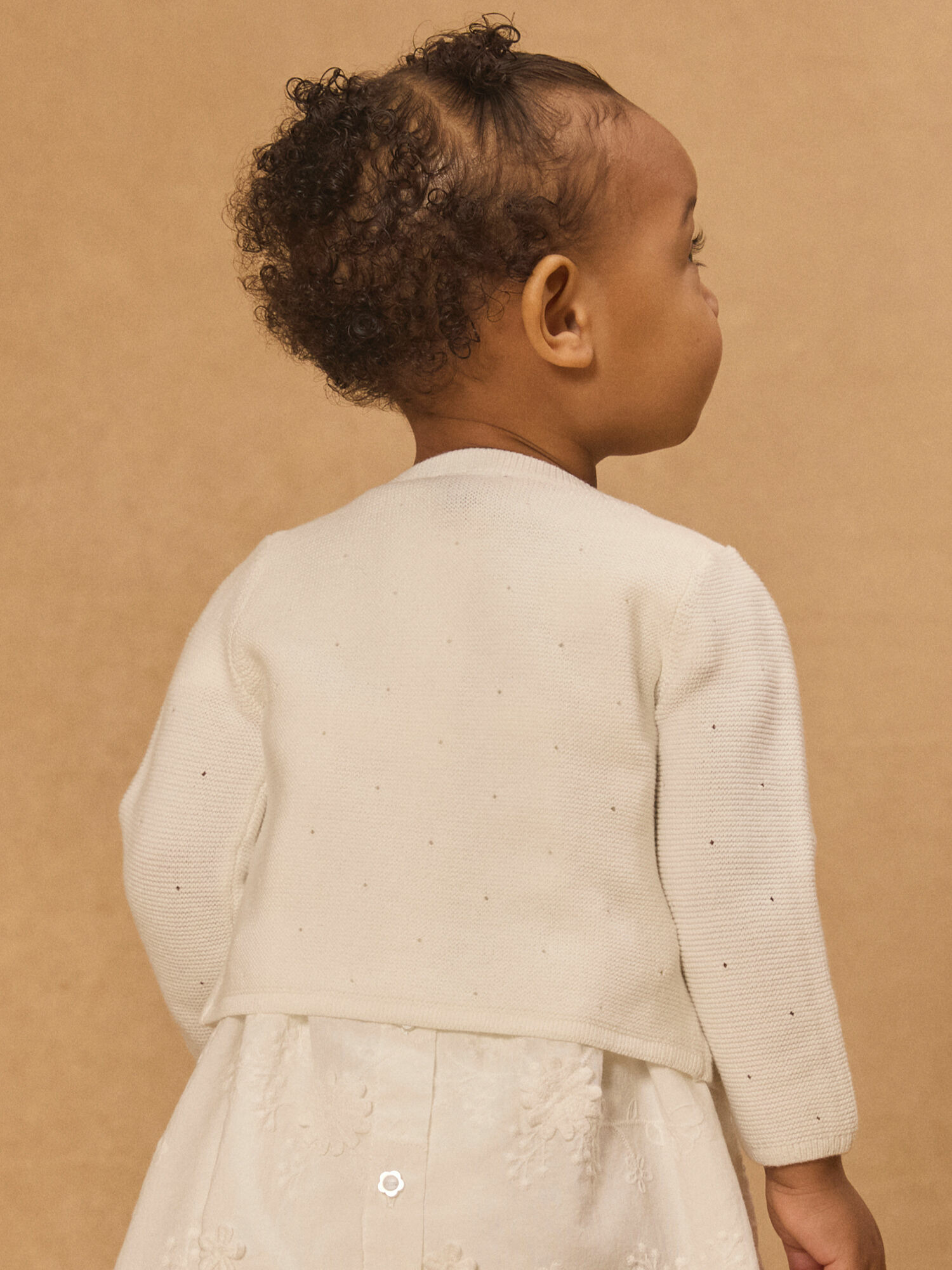 Confectionné dans un tissu doux et aéré, ce cardigan ajouré offre un confort optimal tout en restant raffiné. Son ouverture avant intégrale facilite l’enfilage et permet de moduler la tenue selon l’envie, parfait pour les journées où la légèreté est de mise. Il s’intègre parfaitement à la collection Ciel de Coton, gage de qualité et de douceur.