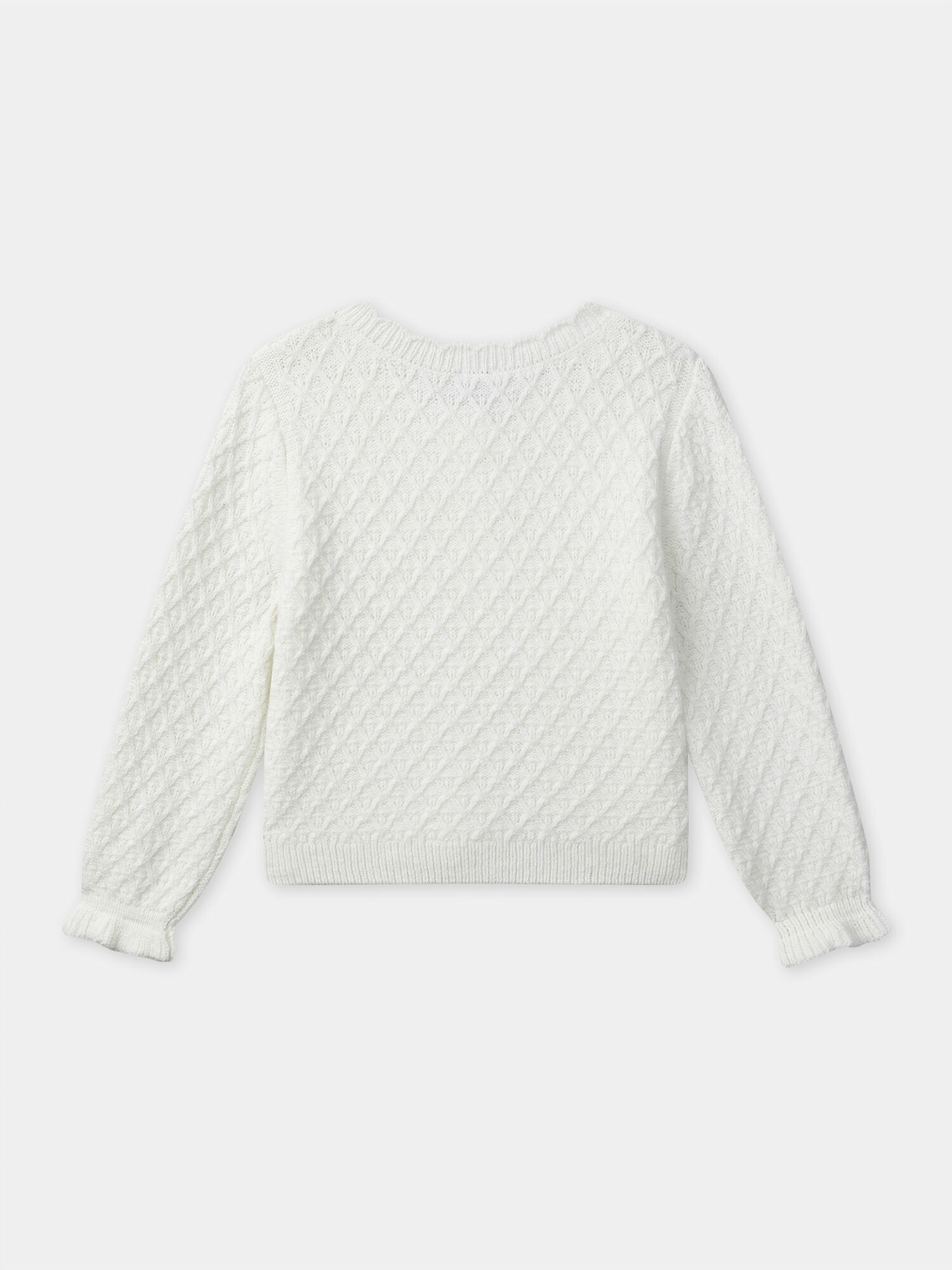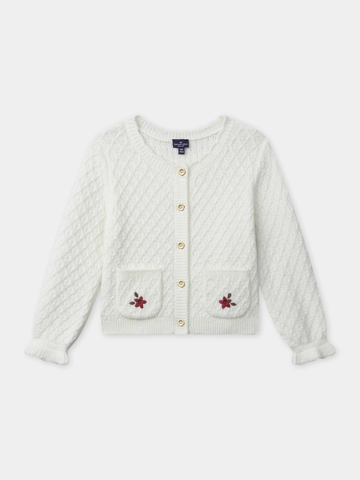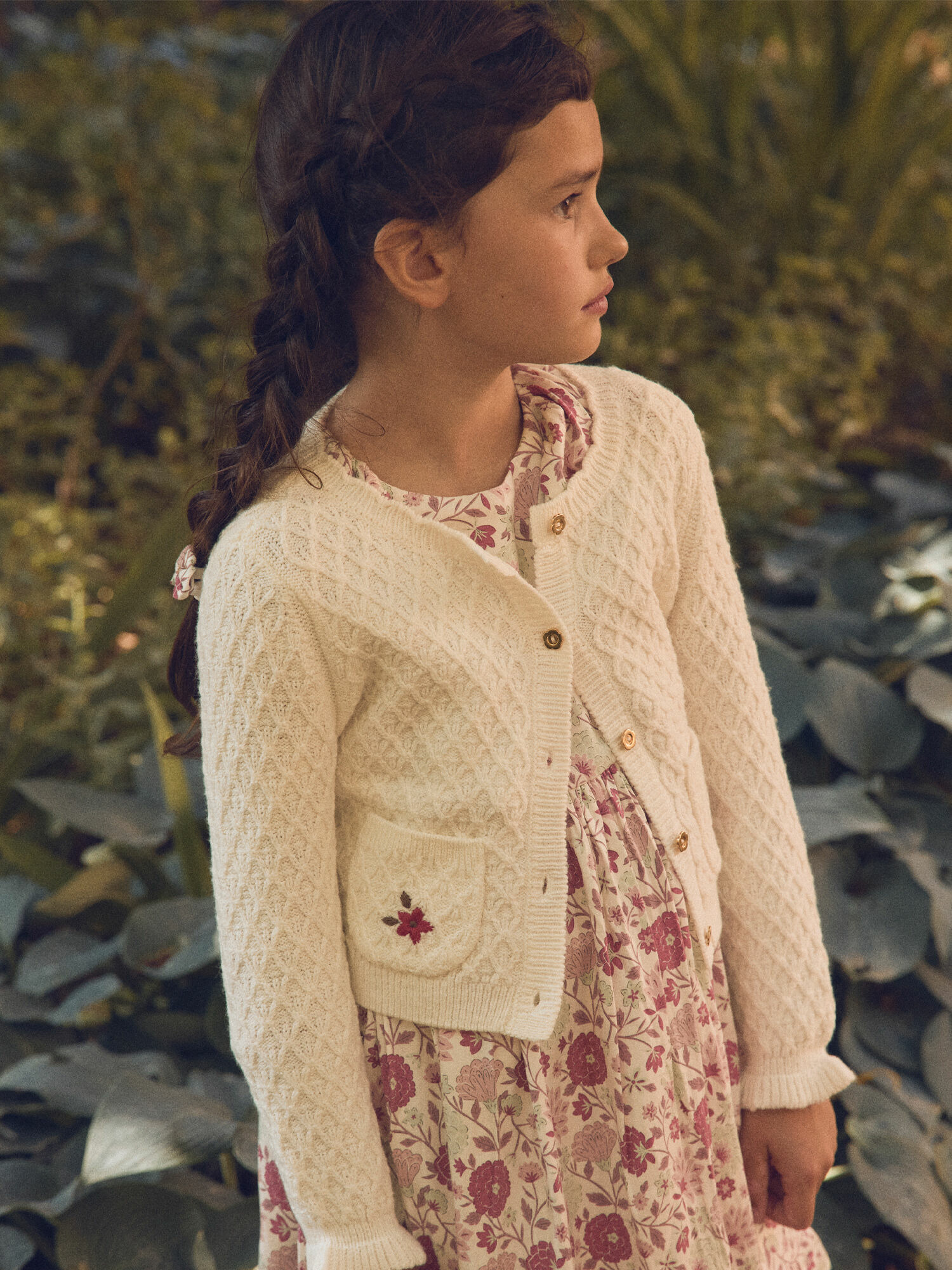 Un cardigan blanc en maille qui allie douceur et élégance pour les petites filles. Parfait pour les journées fraîches, il se distingue par ses détails raffinés et son confort optimal.