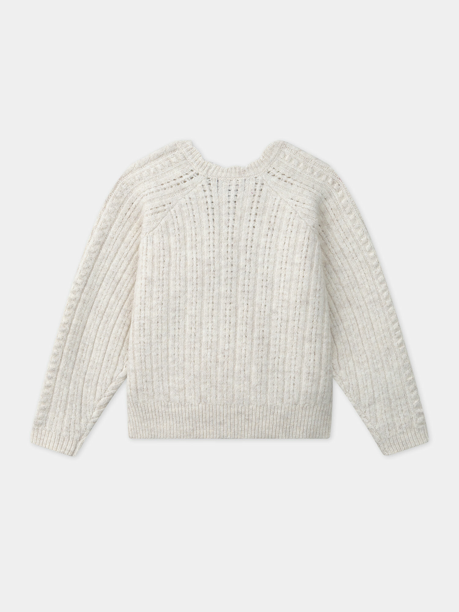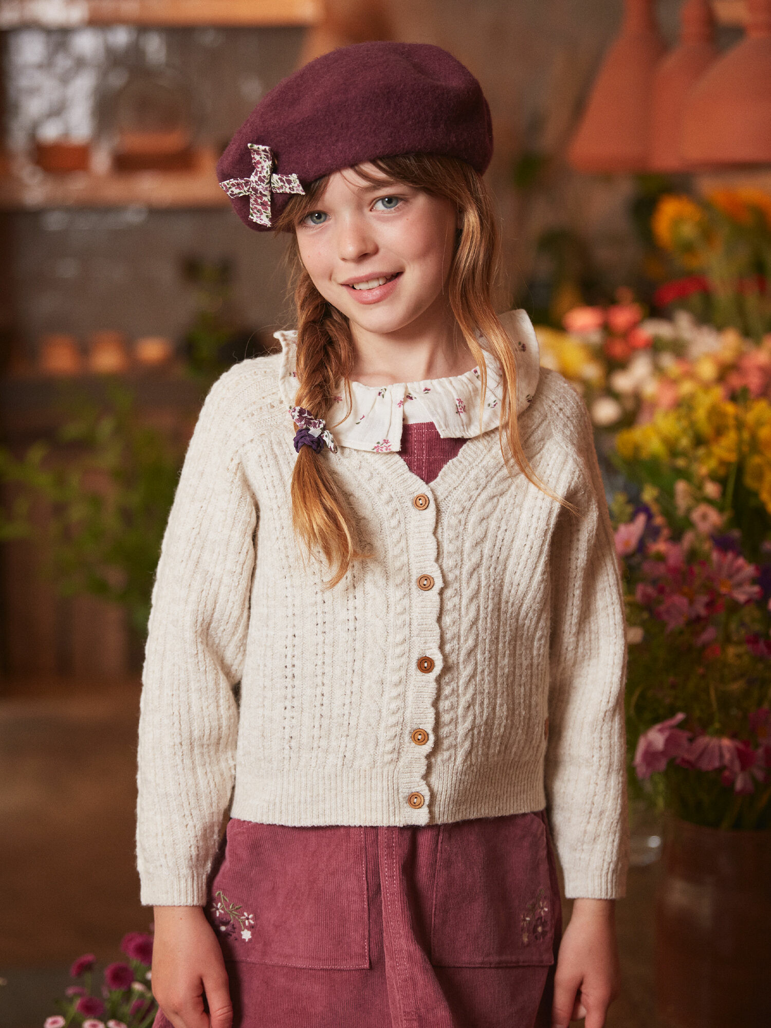 Référence : LUCARDETTE / 24H2PFM1CAR006. Cardigan écru chiné, tricot fin, fermeture boutonnée, manches longues, coupe ajustée. Matière douce et résistante, entretien facile.