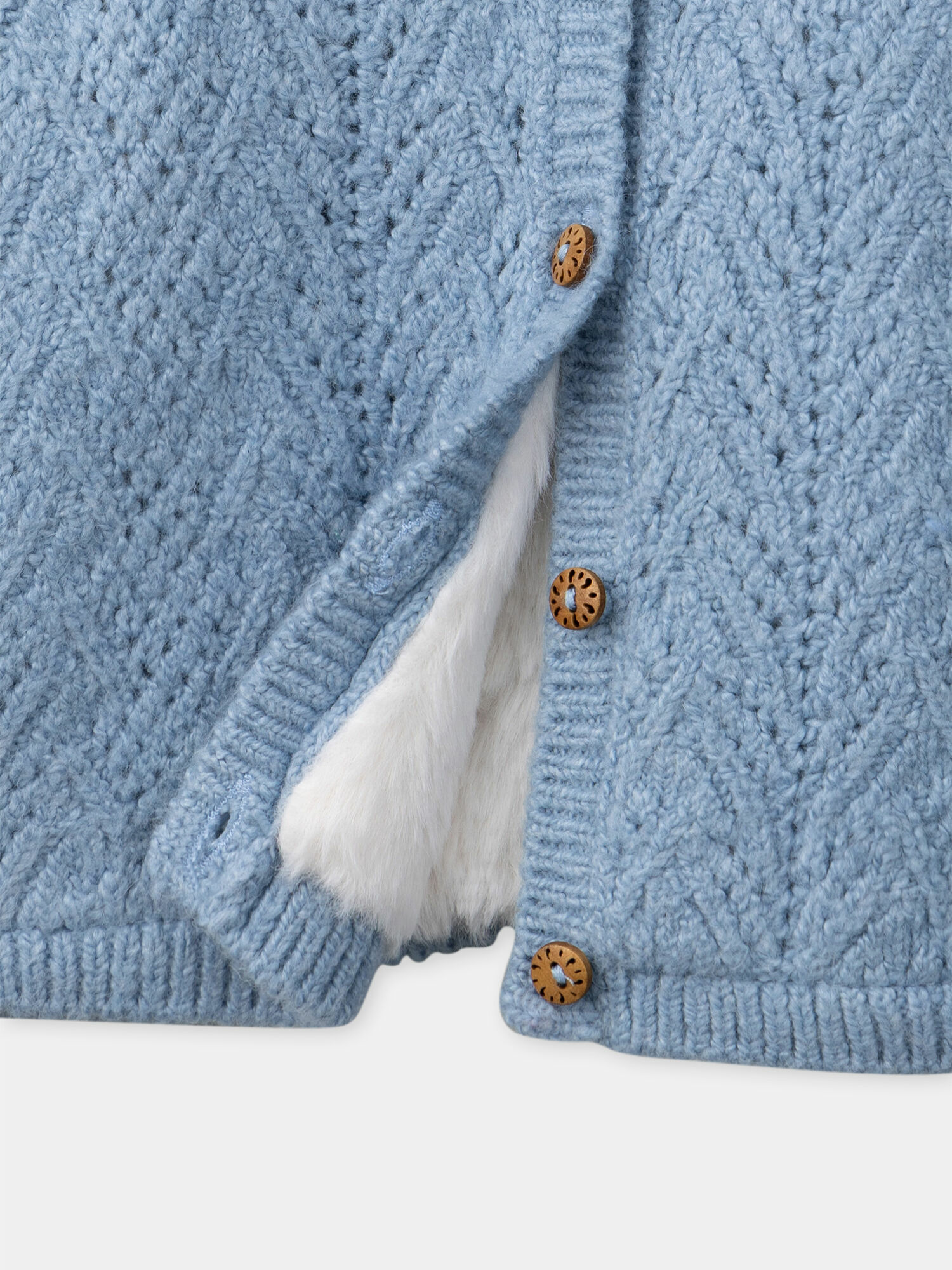 Chaleur et style réunis pour affronter les journées fraîches avec élégance. Ce cardigan fourré est la pièce incontournable pour les petites frileuses qui veulent rester confortables sans sacrifier leur look.