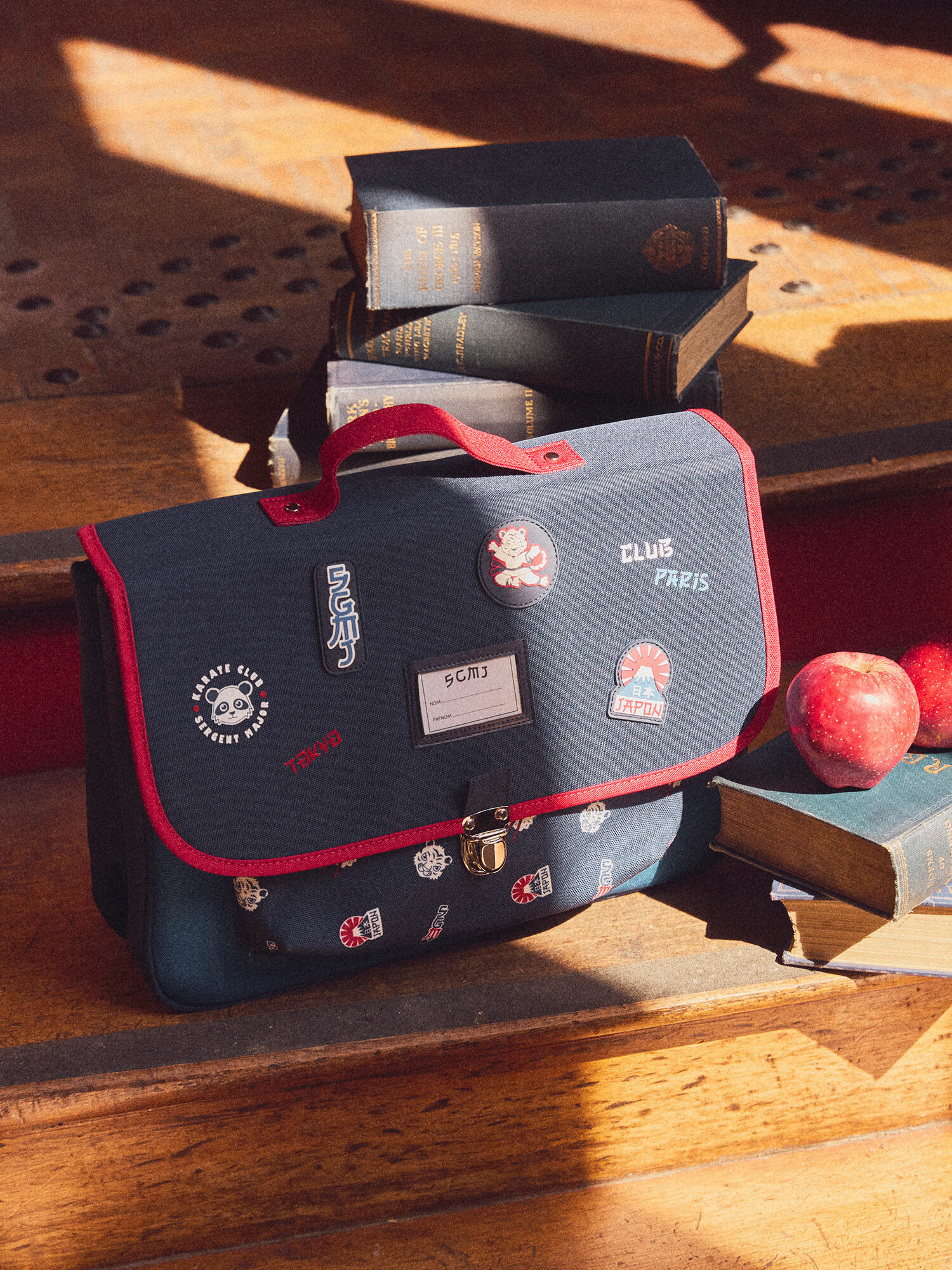 Ce cartable Sergent Major séduit par ses imprimés et patchs thématiques, apportant une touche dynamique et culturelle. Sa poche avant imprimée marine, sa séparation intérieure et sa poche latérale facilitent l’organisation des affaires scolaires. Pratique, il intègre une étiquette personnalisable pour nom et prénom, idéale pour éviter les pertes. L’anse rouge et les bretelles marines réglables avec finitions bleues assurent un port confortable et adapté à la croissance de l’enfant.