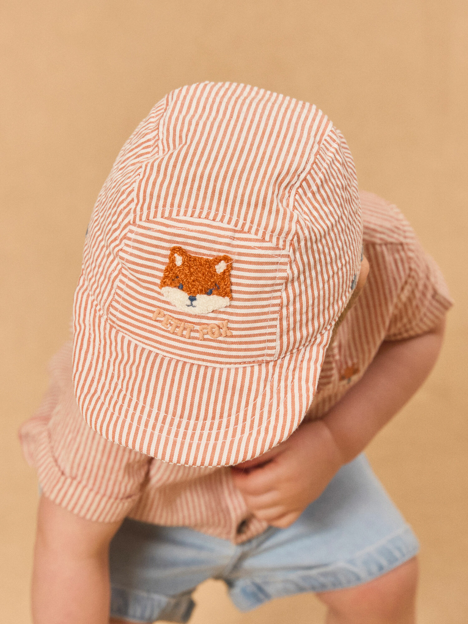 Conçue pour accompagner chaque aventure, cette casquette Sergent Major se distingue par ses rayures oranges et blanches dynamiques. La broderie bouclette en forme de renard et l’imprimé "petit fox" sur l’avant apportent une note ludique et originale. L’élastique à l’arrière garantit un maintien optimal, s’adaptant parfaitement à la tête de votre enfant sans gêne.
