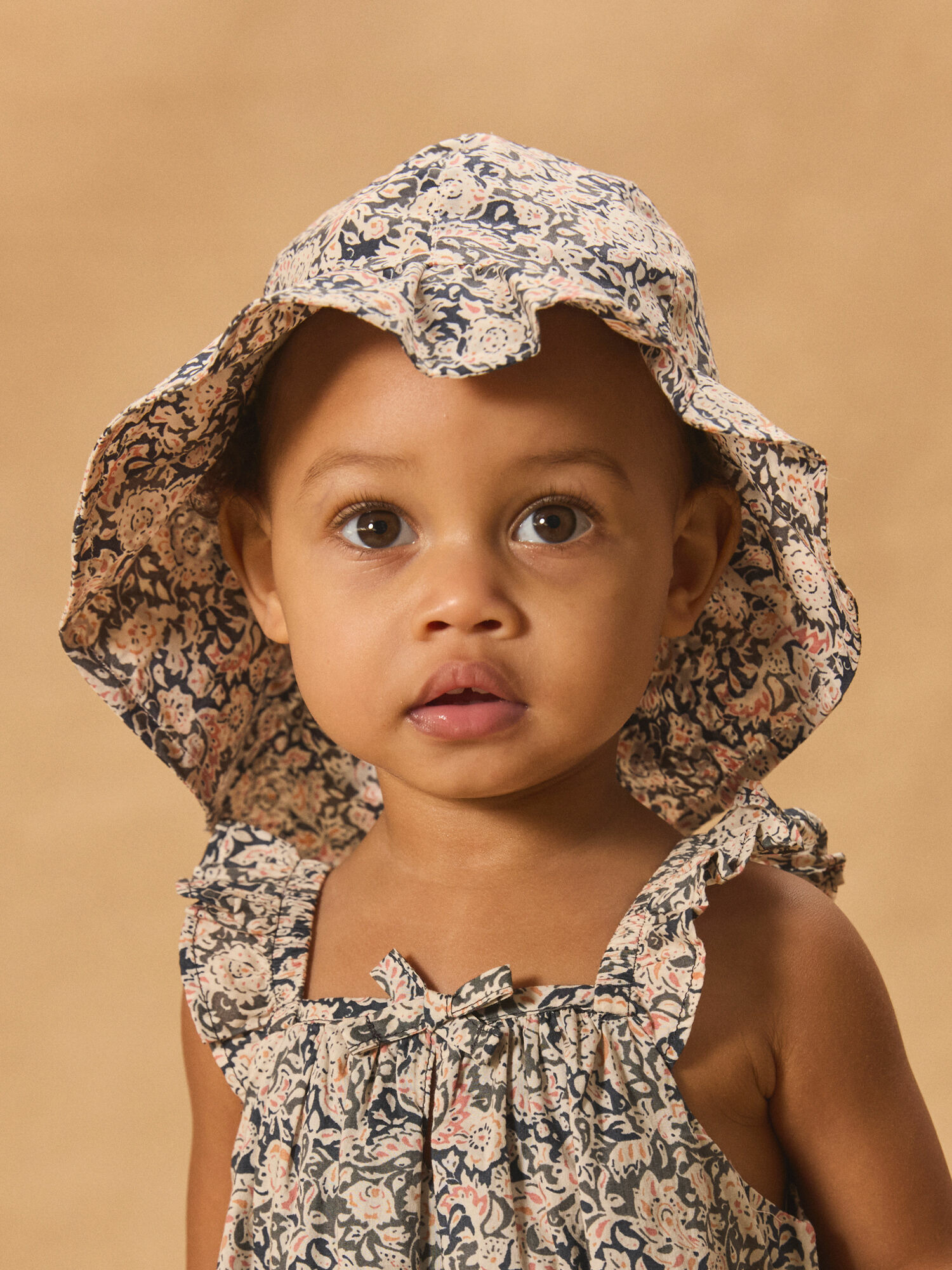 Protégez délicatement votre nuque tout en affirmant votre style avec ce chapeau cache nuque imprimé. Son motif fleuri aux nuances beiges et vieux rose sur fond noir apporte une élégance discrète et intemporelle.