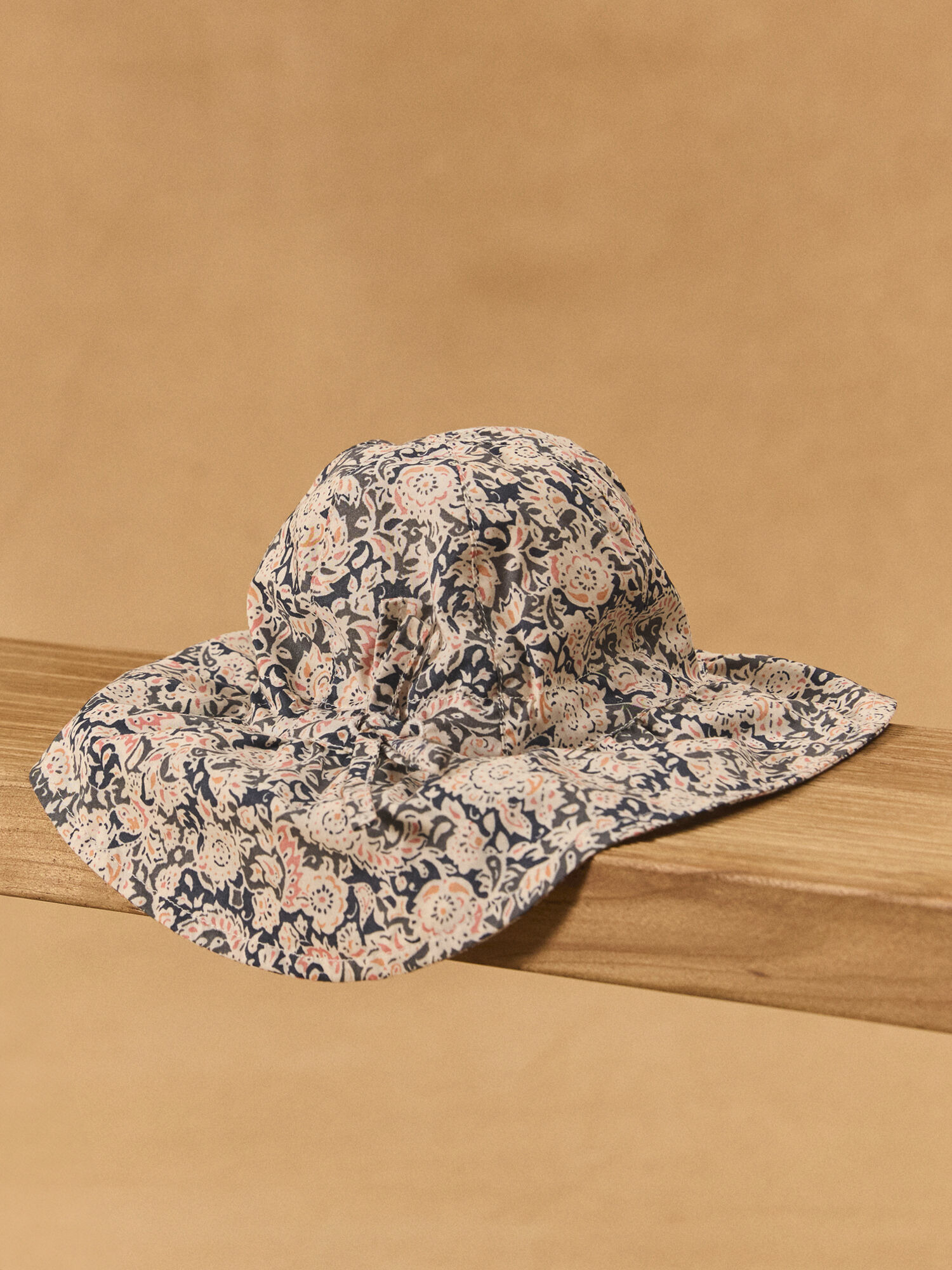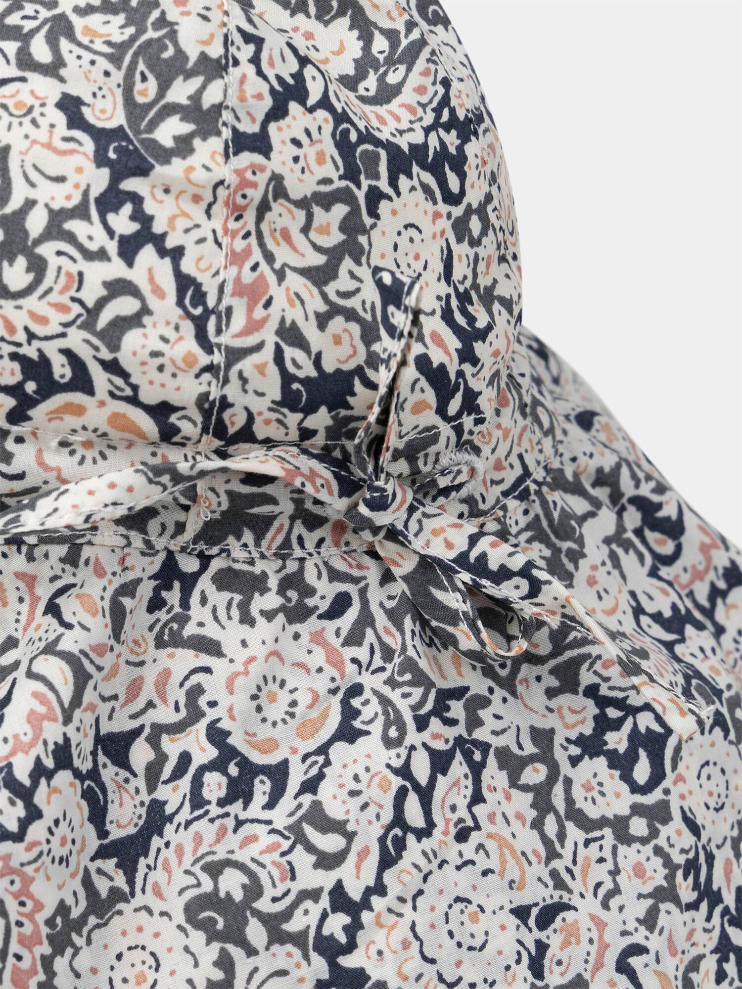 Imprimé fleuri dans les tons beiges et vieux rose sur fond noir, liens à nouer sous le menton, lien de serrage à l’arrière pour un maintien ajustable. Référence produit : MAZOLA / 25E4BFR1CHAC243. Ce modèle fait partie de la collection Sable Noir.