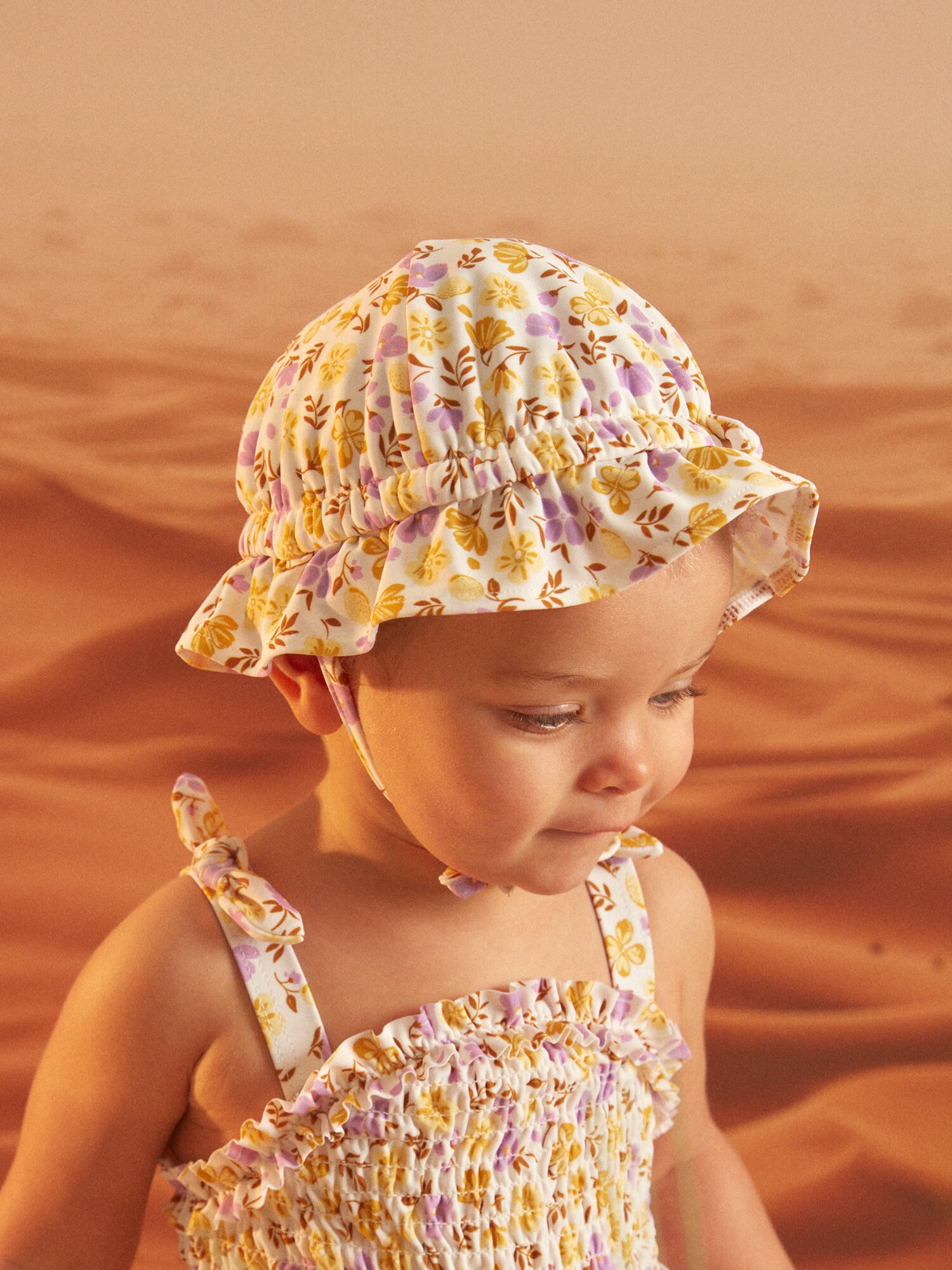 Conçu pour allier style et confort, ce chapeau léger protège efficacement du soleil tout en complétant votre tenue estivale avec raffinement. Son imprimé fleuri discret s’intègre facilement à toutes vos tenues, du maillot de bain à la robe légère, pour un look frais et soigné.