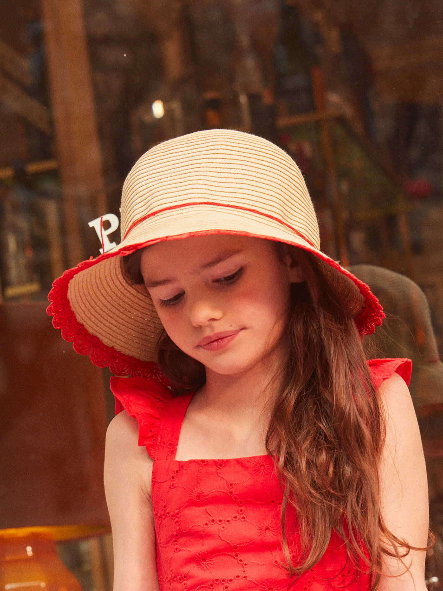 Offrez à votre fille une protection solaire élégante avec ce chapeau en paille signé Sergent Major. Son design rond et son large bord souligné d’un galon festonné rouge vif apportent une touche parisienne raffinée à toutes ses tenues estivales.