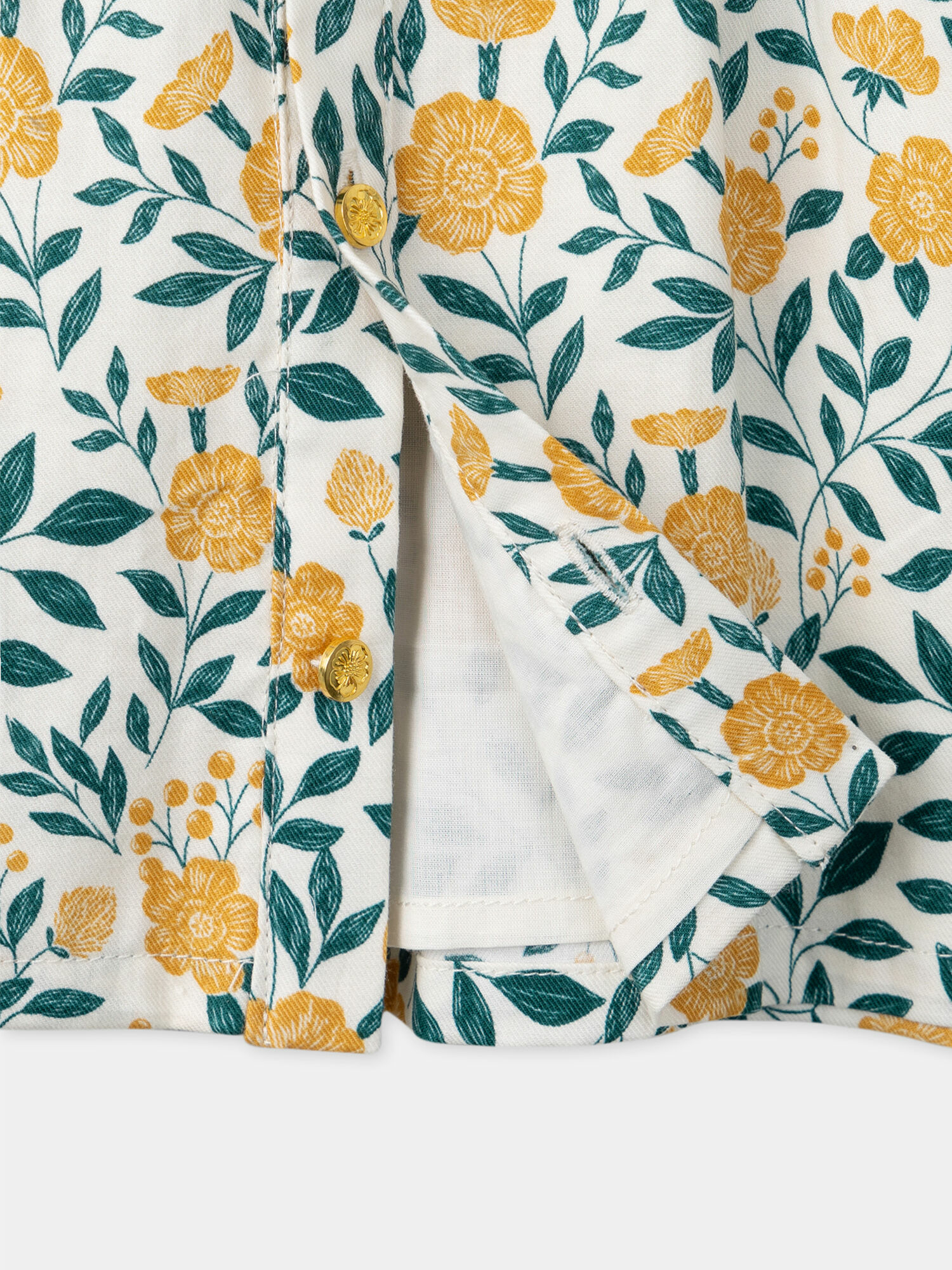 Confectionné avec soin, ce chemisier présente un fond écru orné de motifs fleurs, des bas de manches élastiqués pour un maintien optimal, et une doublure intérieure en coton qui assure douceur et respirabilité. Référence produit : LYCHEMETTE / 24H2PFO1CHE632.