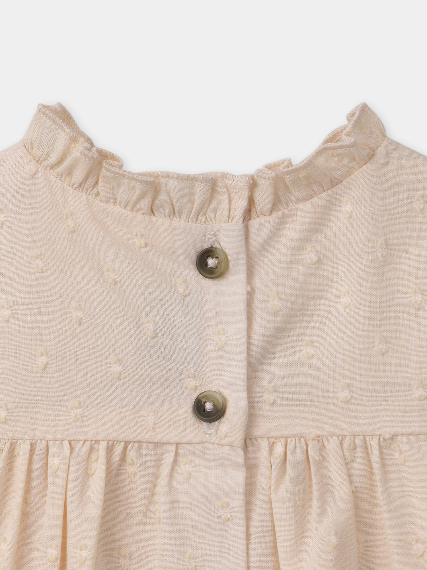 Confectionné avec soin, ce chemisier se distingue par son empiècement brodé à l’avant qui sublime le vêtement sans en faire trop. La base plumetis légère et la doublure intégrée assurent une douceur agréable sur la peau, tandis que les poignets élastiqués garantissent une liberté de mouvement optimale. L’ouverture intégrale au dos, fermée par des boutons effet corrozo, facilite l’habillage tout en ajoutant une finition soignée.