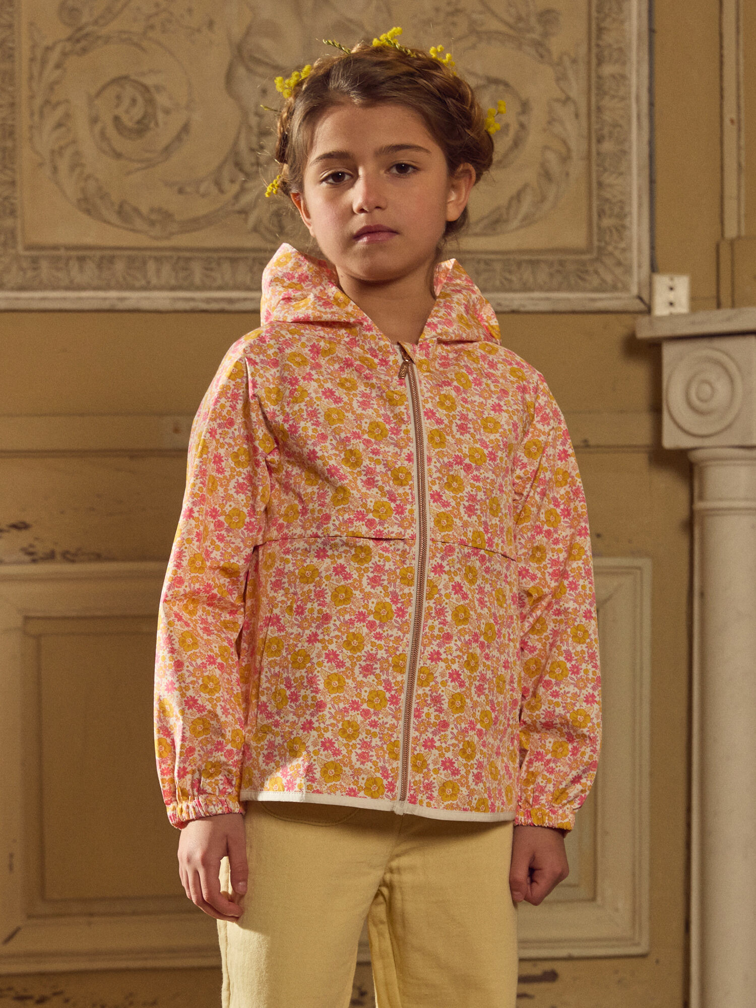 Capuche intégrée, deux poches avant, ouverture zippée sur le devant. Ce modèle fait partie de la collection Jaune de Tournesol. Pour en savoir plus sur ses qualités environnementales, consultez la fiche produit dédiée.