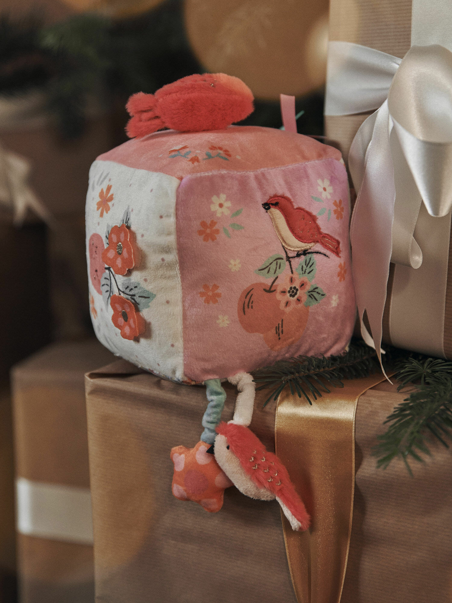 Ce cube tout doux et souple regorge d’activités variées : textures contrastées, sonorités captivantes, miroir pour l’éveil du regard, rubans à manipuler et éléments en relief qui invitent à l’exploration tactile. Chaque face propose une expérience unique, favorisant la motricité fine et la stimulation sensorielle de bébé, tout en garantissant des heures de jeu et d’amusement.