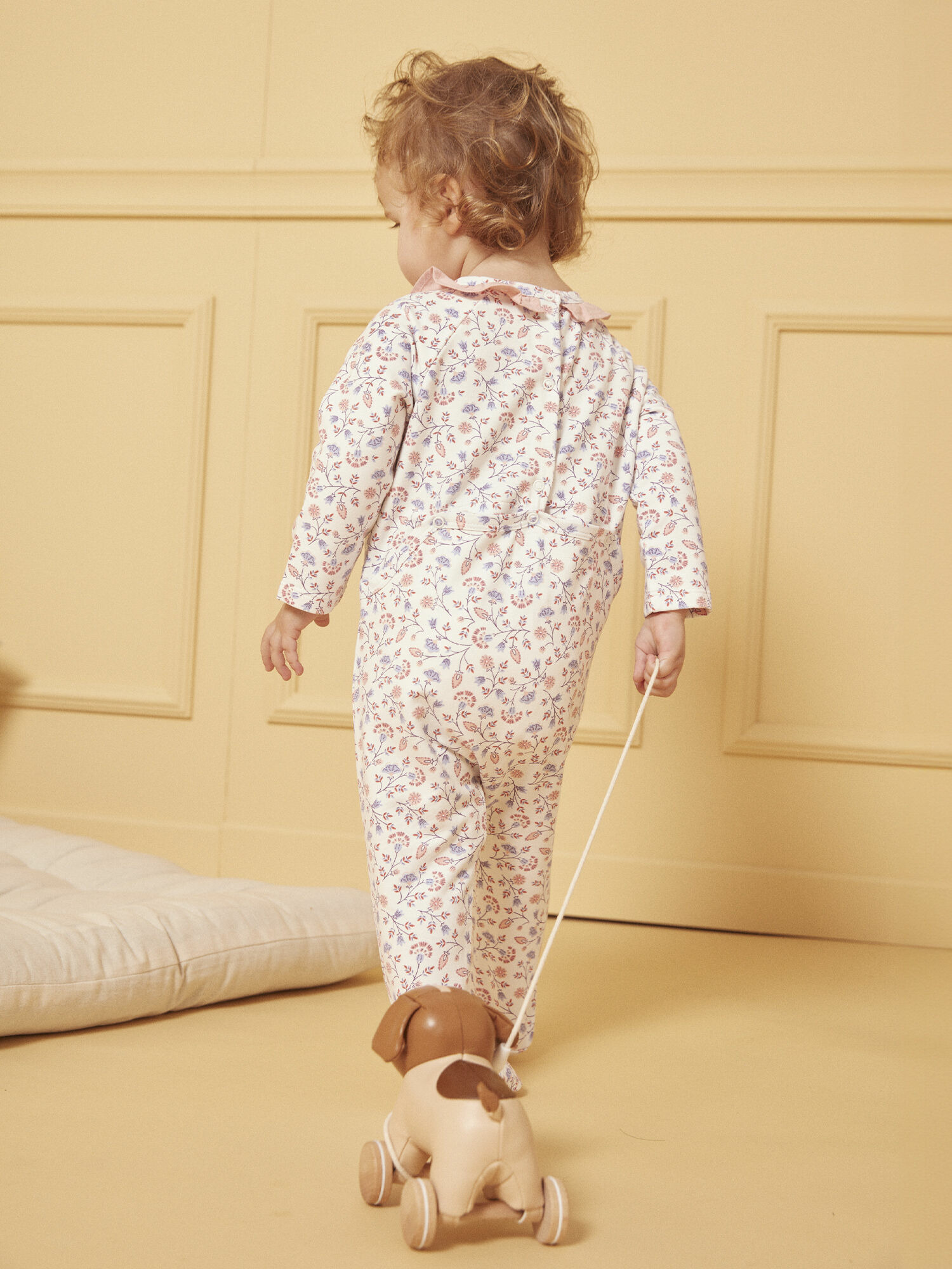 Composition et entretien : molleton gratté doux, col en popeline unie rose ancien. Dessous des pieds avec impression en relief en forme de pois rose ancien. Référence produit : LEAGNES / 24H5BFH2GRE001. Pour plus d’informations sur ses qualités environnementales, consultez la fiche produit dédiée.