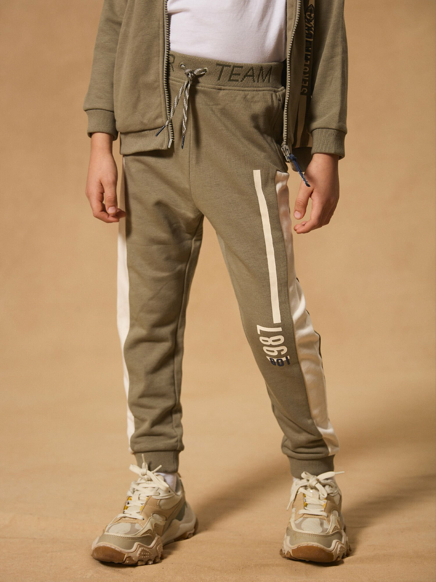 Matière : molleton kaki avec empiècement blanc, toucher effet peau de pêche. Taille élastiquée avec cordon de serrage. Deux poches avant. Bord côte à la taille et aux chevilles. Lettrage imprimé sur l’avant. Référence : MMACHIFAGE / 25E3PG52JGBG600. Découvrez les caractéristiques environnementales en cliquant sur le lien dédié.
