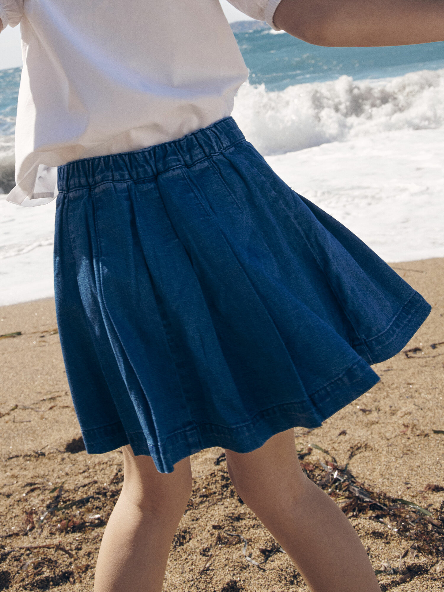 Légère et élégante, cette jupe bleue plissée en jean incarne la fraîcheur et la modernité. Son design soigné apporte une touche féminine et dynamique à toutes vos tenues.