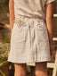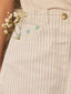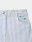 Fabriquée en denim de qualité, elle présente une fermeture zippée discrète et une taille ajustée pour un maintien optimal. Les rayures sont intégrées dans le tissu, garantissant une tenue parfaite au fil des lavages.