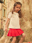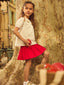 Offrez à votre fille une touche d’élégance intemporelle avec cette jupe plissée rouge ornée de broderies florales délicates. Un équilibre parfait entre style raffiné et confort au quotidien.