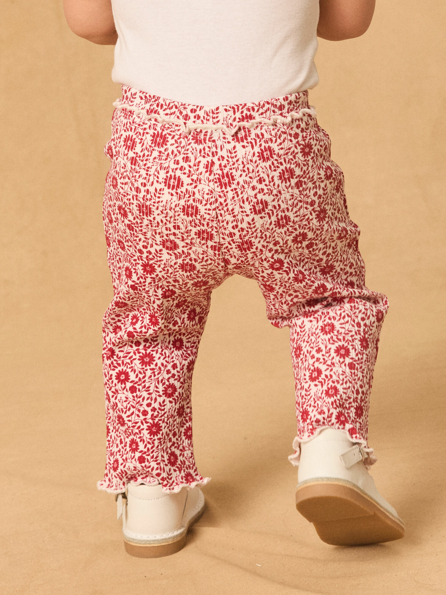L’imprimé fleuri écru et rouge dynamise la silhouette avec une touche délicate et féminine. Sa coupe flare, agrémentée de volants à la taille et au bas des jambes, apporte un mouvement léger et une allure moderne, idéale pour les petites fashionistas. La taille élastiquée assure un maintien parfait sans contrainte, pour une liberté de mouvement optimale tout au long de la journée.