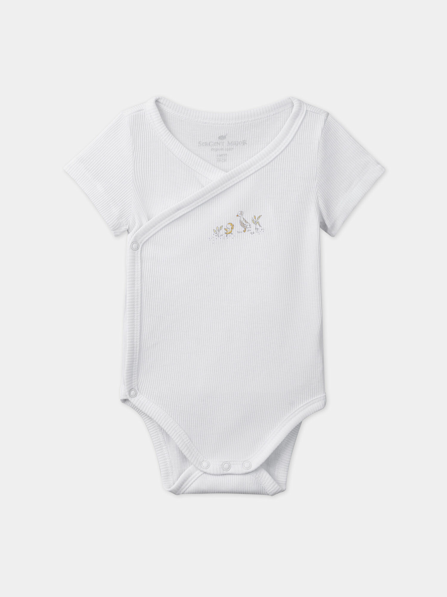 Confectionnés en maille côtelée, ces bodies associent praticité et charme naturel. Le premier body arbore un imprimé délicat d’animaux de la ferme dans des tons beige, jaune et orangé sur fond écru, tandis que le second met en scène une oie et un poussin sur un buste subtilement décoré. Leur palette douce et lumineuse s’accorde parfaitement avec la collection Un été bucolique, apportant une touche d’authenticité et de poésie au dressing de bébé.