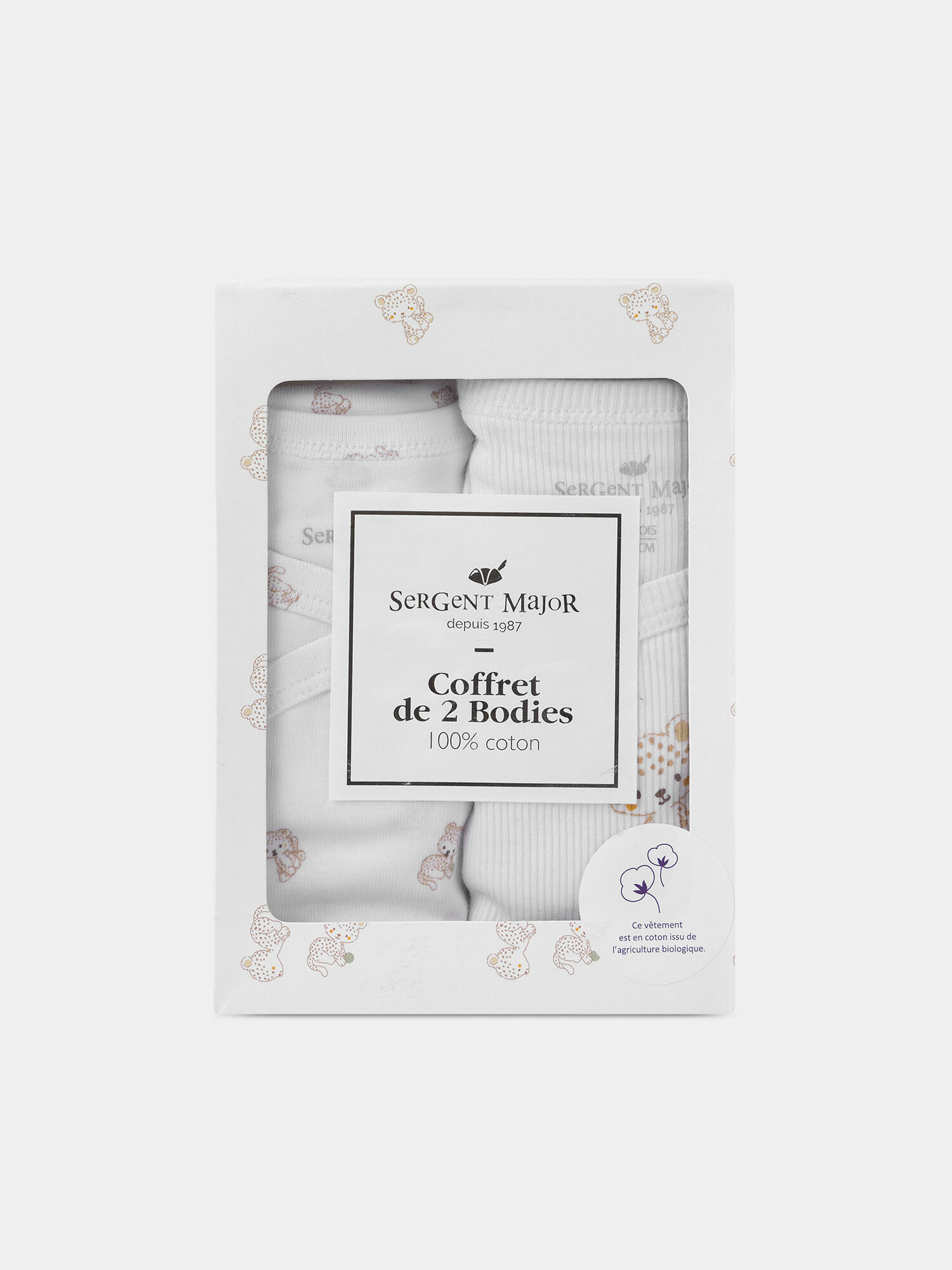 Offrez à votre nouveau-né douceur et style dès les premiers jours avec ce lot de 2 bodies Sergent Major en coton biologique. Un duo élégant et pratique, pensé pour le confort et la délicatesse de la peau fragile des tout-petits.
