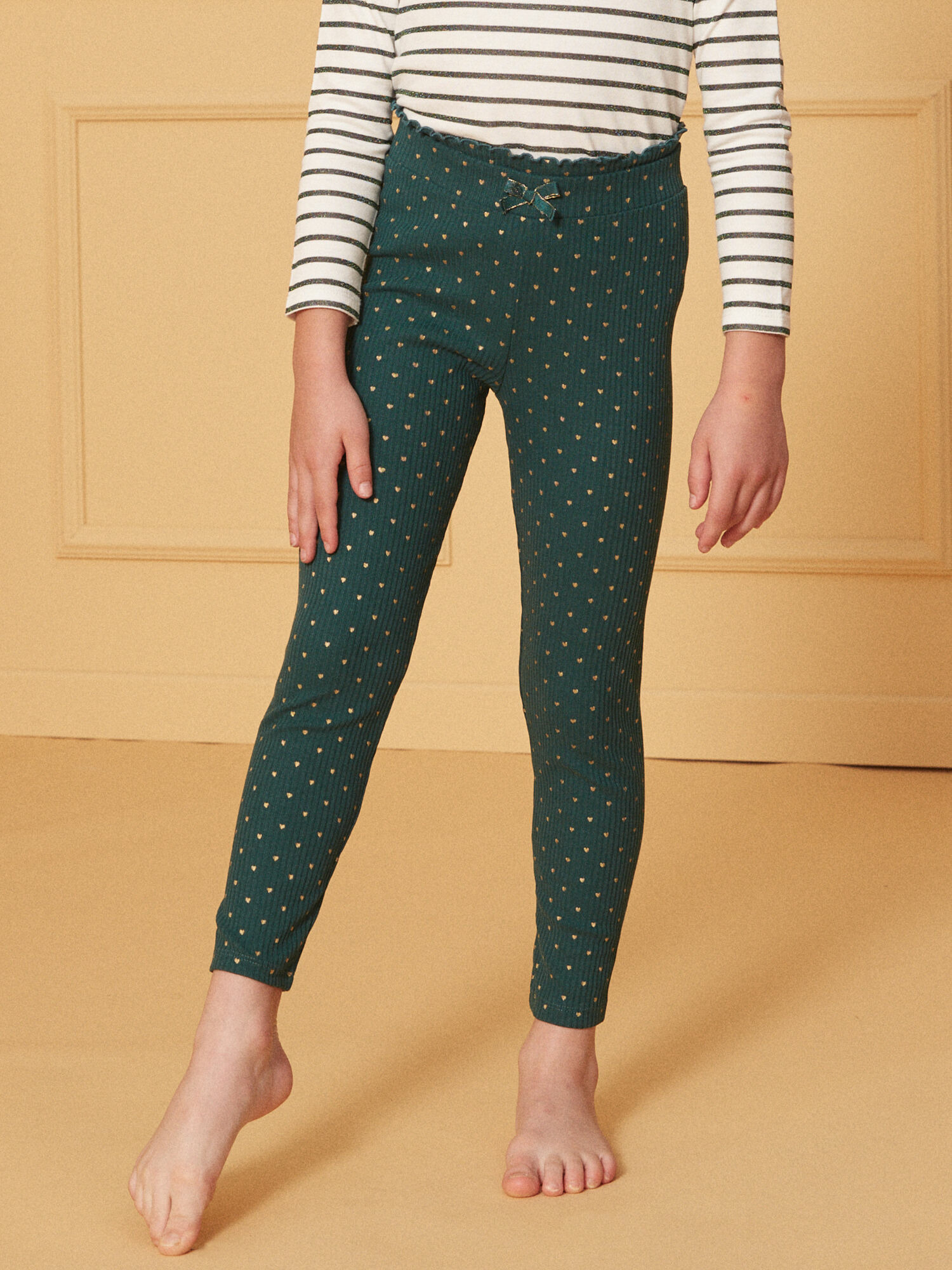 Le legging vert séduit par ses motifs cœurs dorés et son nœud assorti, parfait pour un look ludique et raffiné. Le legging rouge, plus sobre, reste chic avec son nœud doré délicat. Leur coupe ajustée épouse parfaitement les mouvements, garantissant aisance et liberté pour chaque jeu ou sortie.