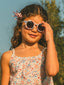 Monture en plastique léger et résistant, verres teintés offrant une protection UV400, dimensions adaptées aux visages des filles, coloris imprimé floral exclusif Sergent Major.