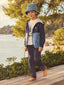 Confectionné dans un tissu doux et résistant, ce pantalon se distingue par ses fines rayures écrues qui apportent une touche graphique subtile à la silhouette. Sa coupe droite assure une aisance parfaite, idéale pour accompagner les mouvements naturels de l’enfant tout au long de la journée. Polyvalent, il se marie facilement avec un t-shirt ou une chemise pour un look soigné en toute simplicité.