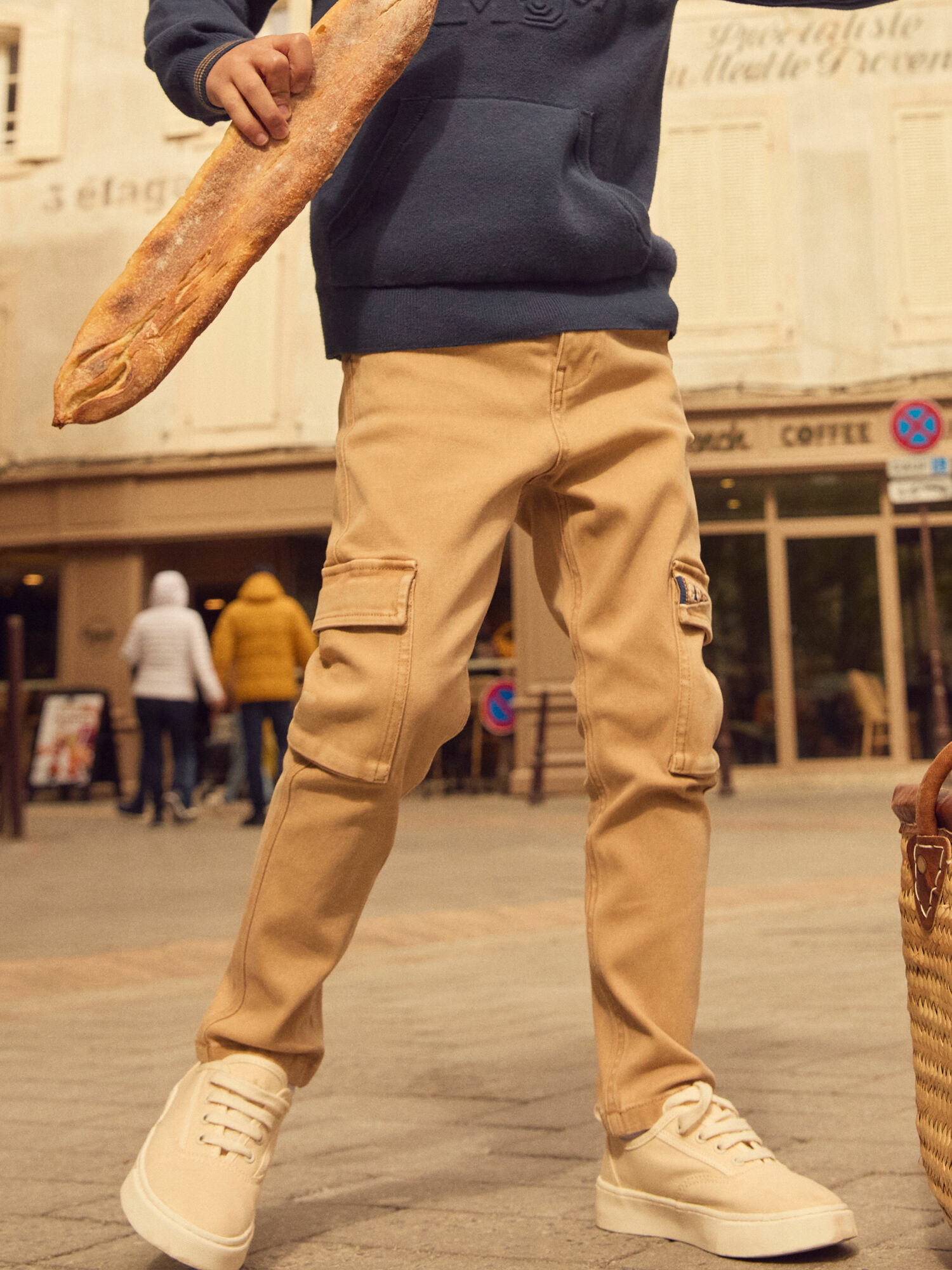 Offrez à votre garçon un pantalon cargo marron alliant robustesse et style pour ses aventures quotidiennes. Conçu pour suivre tous ses mouvements, il allie praticité et modernité avec une touche tendance.