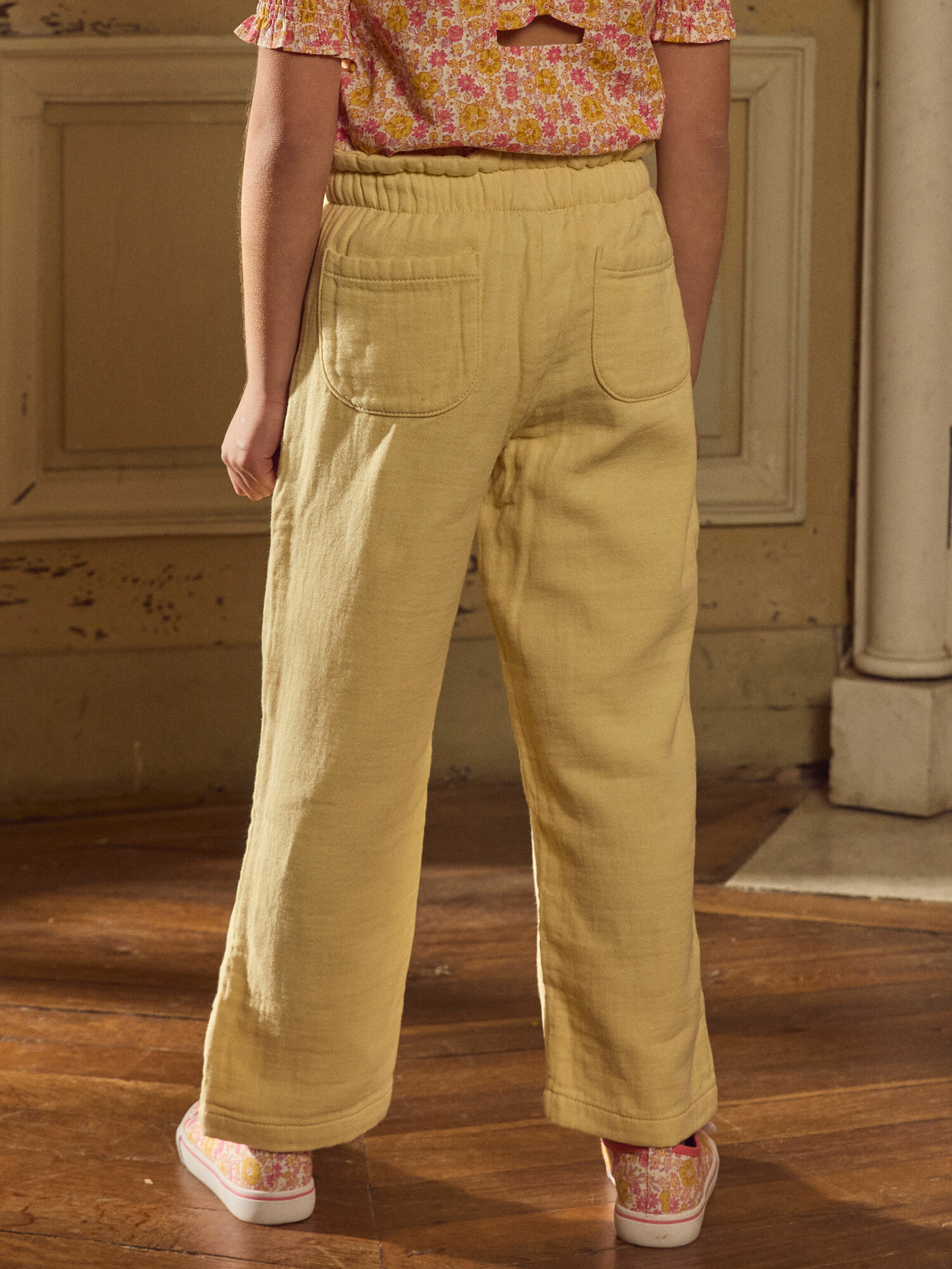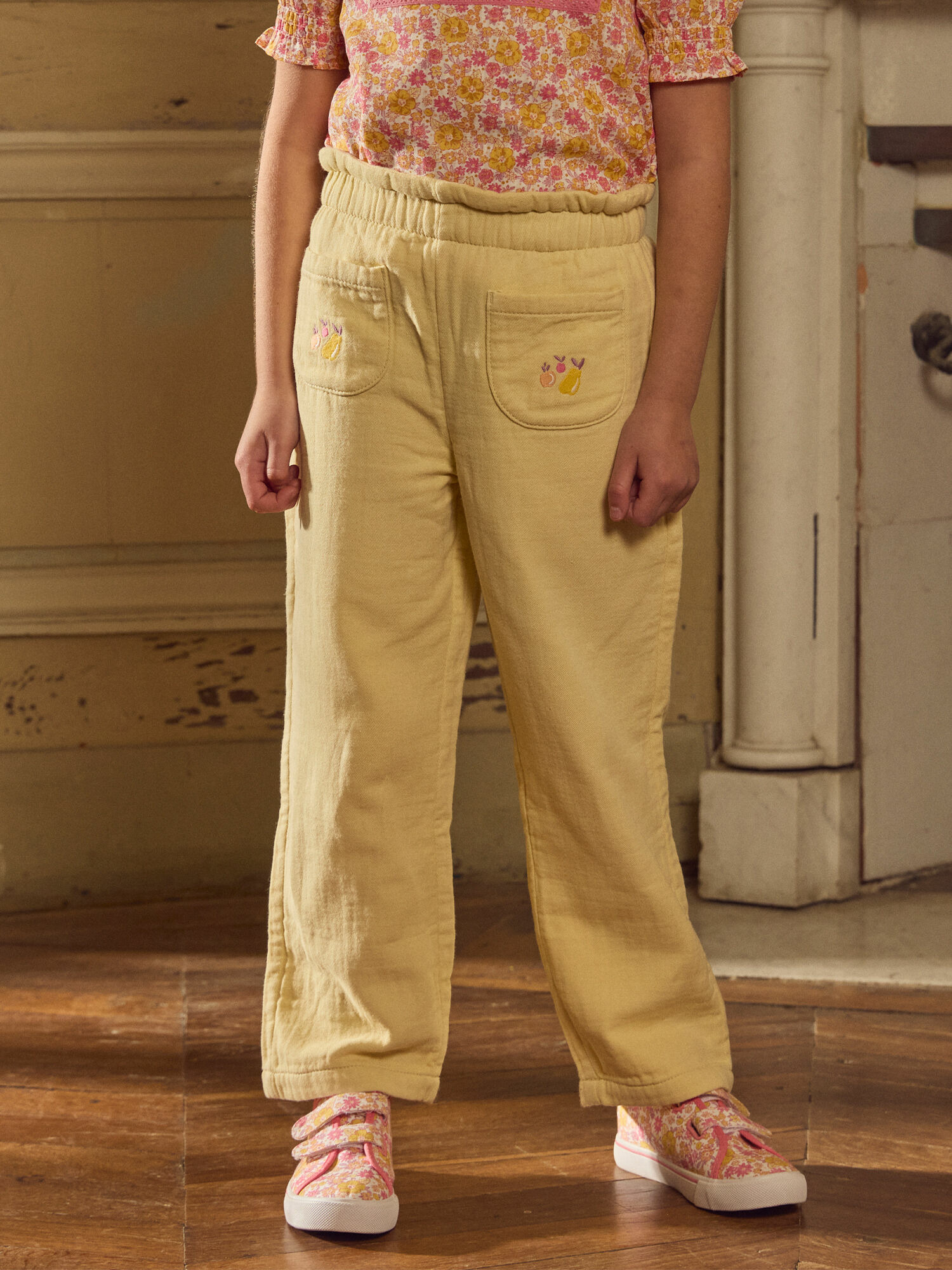 Fit wide leg, deux poches avant brodées, deux poches arrière, taille élastiquée. Ce pantalon fait partie de la collection Jaune de Tournesol. Pour en savoir plus sur ses qualités et caractéristiques environnementales, consultez la fiche produit dédiée.