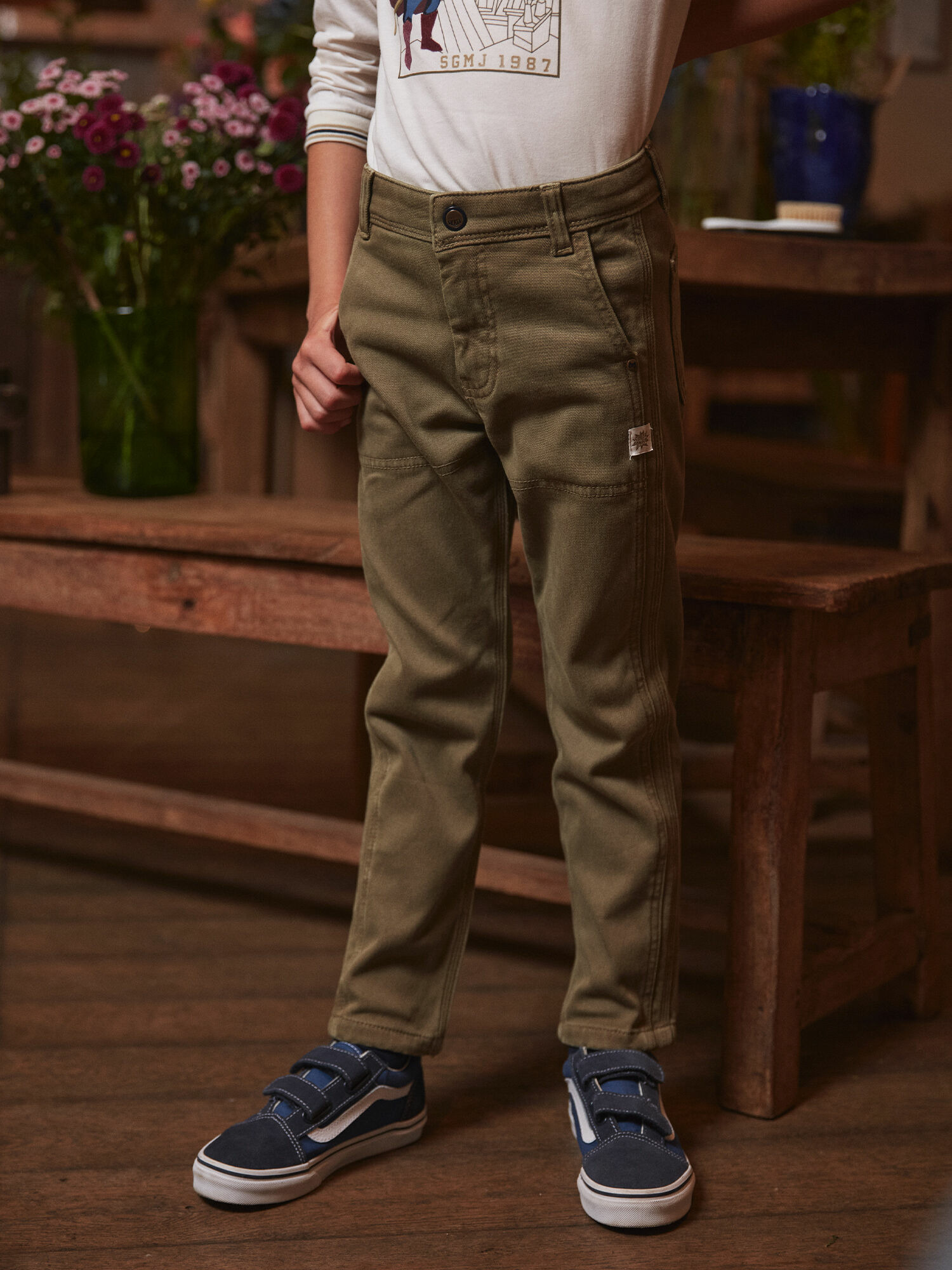 Conçu pour résister aux jeux et explorations, ce pantalon allie robustesse et douceur grâce à son intérieur gratté qui apporte chaleur et bien-être. Son coloris kaki polyvalent s’adapte à toutes les tenues, tandis que ses cinq poches offrent un espace de rangement optimal pour les petits trésors et objets essentiels.