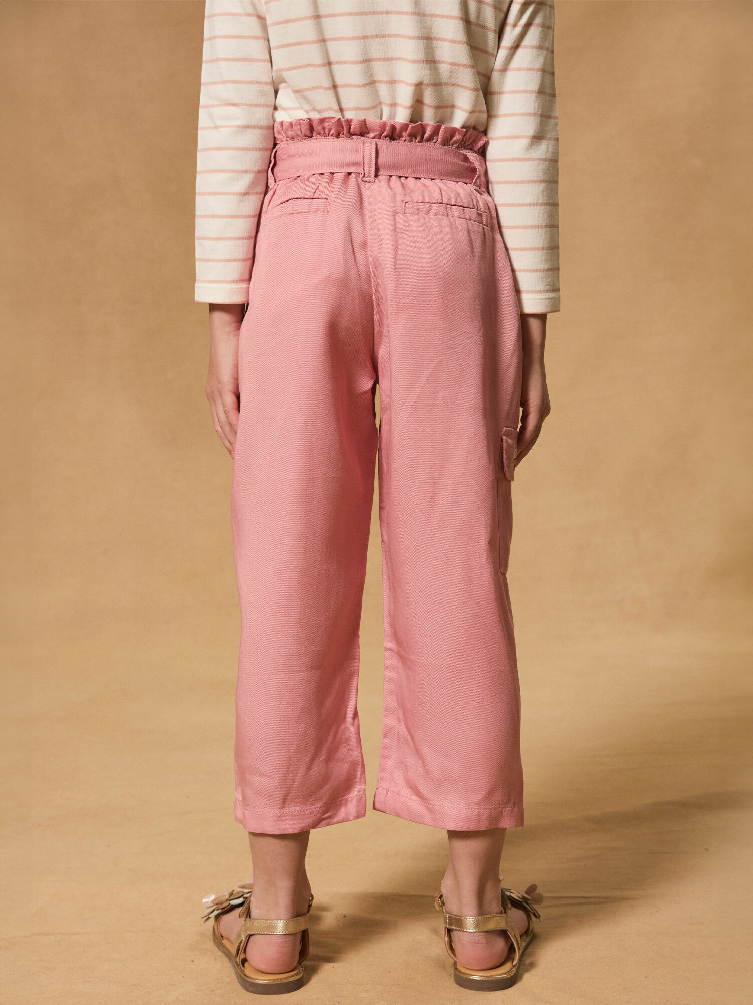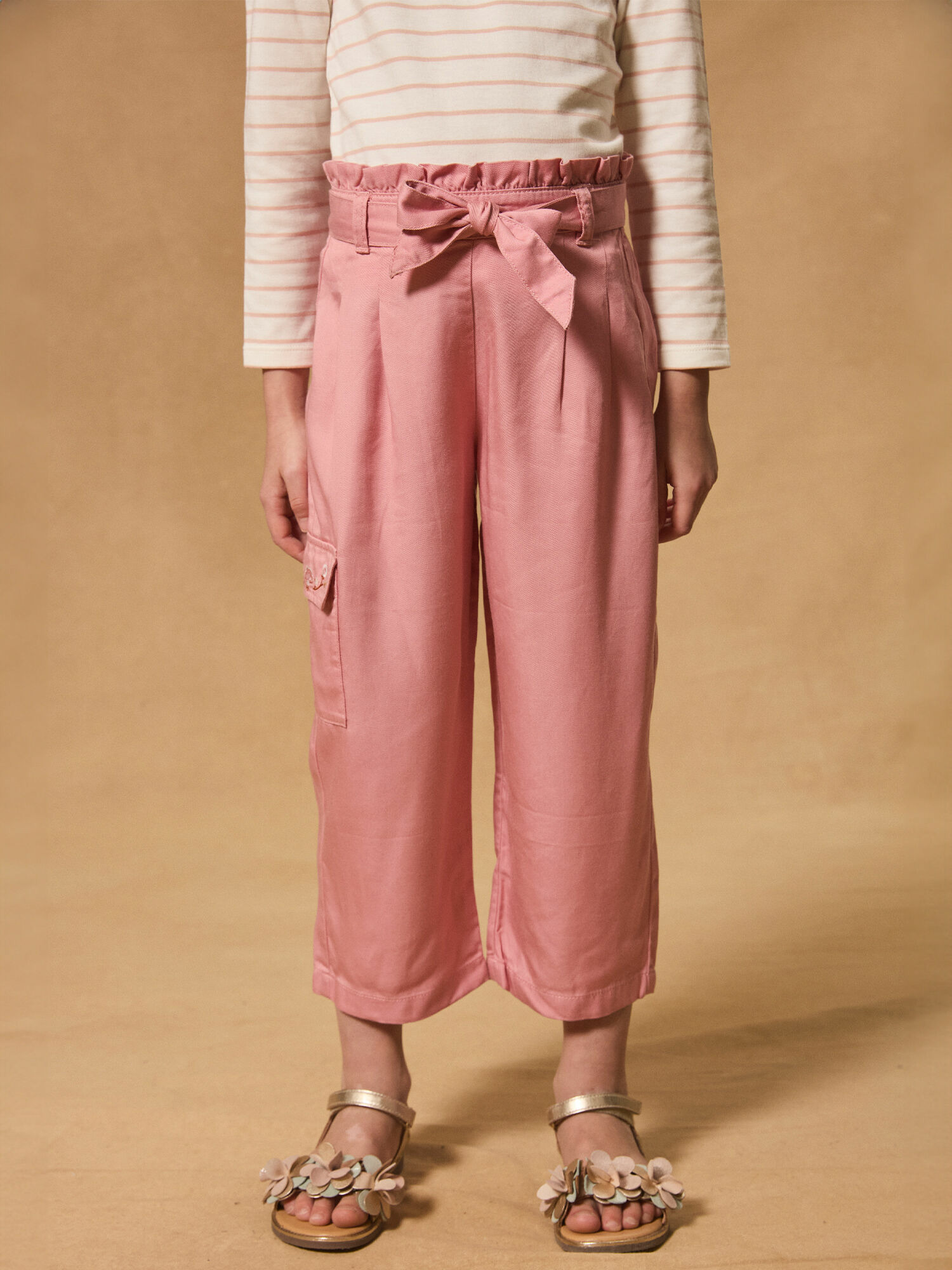 Pantalon wide leg en tissu rose, ceinture amovible à la taille, taille élastiquée pour un ajustement optimal, poche fonctionnelle le long de la jambe. Ce modèle fait partie de la collection Mix Major. Pour découvrir les caractéristiques environnementales du produit, veuillez consulter la fiche dédiée disponible via le lien indiqué.