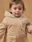 Confectionnée en tissu imperméable avec une doublure matelassée amovible, cette parka est dotée d’une capuche ajustable, de poches sécurisées et d’une fermeture zippée avec rabat pressionné. Lavable en machine, elle est conçue pour durer et accompagner bébé au fil des saisons.