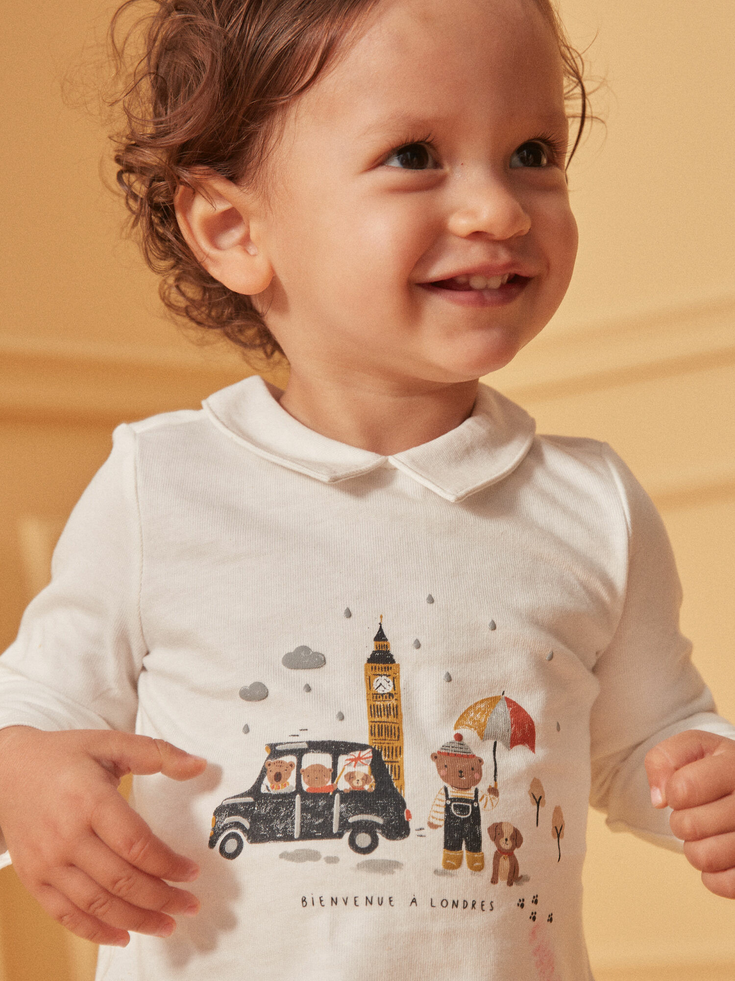 Offrez à votre enfant un style unique avec ce polo à manches longues écru, orné d’un imprimé oursons inspiré de Londres. Confort et originalité s’allient pour accompagner toutes ses journées actives.