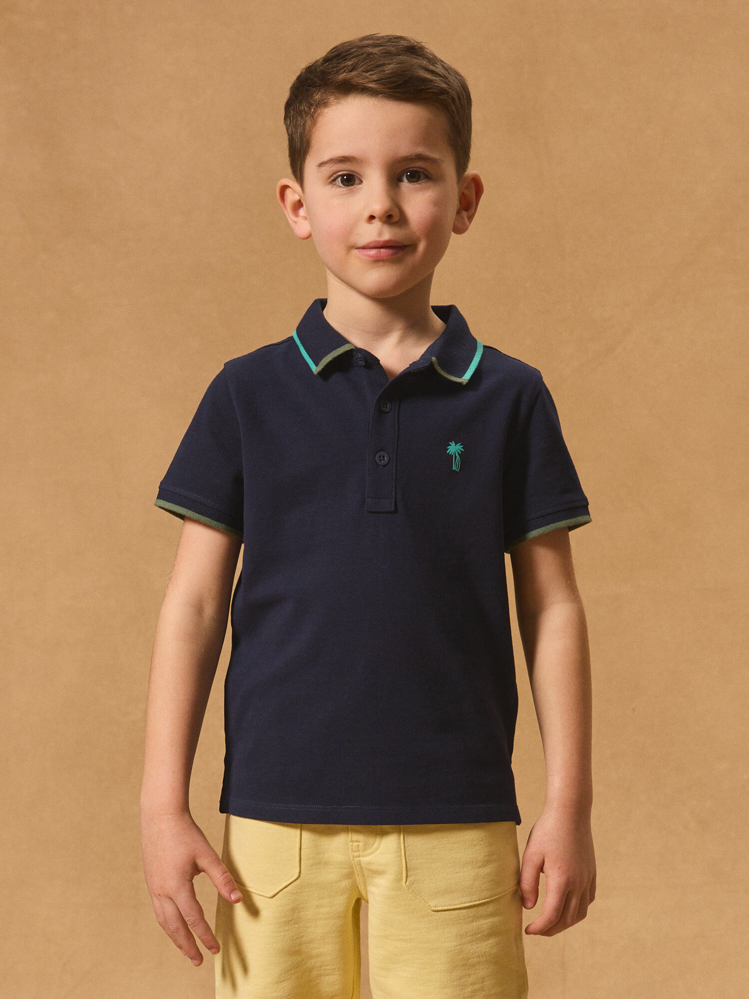 Ce polo appartient à la collection Robes & Polos de Sergent Major. Il présente une broderie palmier turquoise à la poitrine, un bord côte rayé au col et au bas des manches, ainsi qu’une ouverture frontale à trois boutons. Pour découvrir ses qualités et caractéristiques environnementales, consultez la fiche produit dédiée en cliquant ICI.