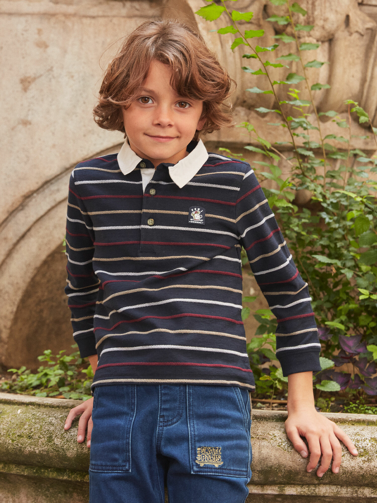 Fabriqué dans la Collection Chouquette à Paris, ce polo rayé marine est doté de rayures en relief, d’un col contrasté blanc et d’un patch poitrine distinctif. Disponible en taille 5 ans, référence LUPOLAGE / 24H3PGM1POL070.