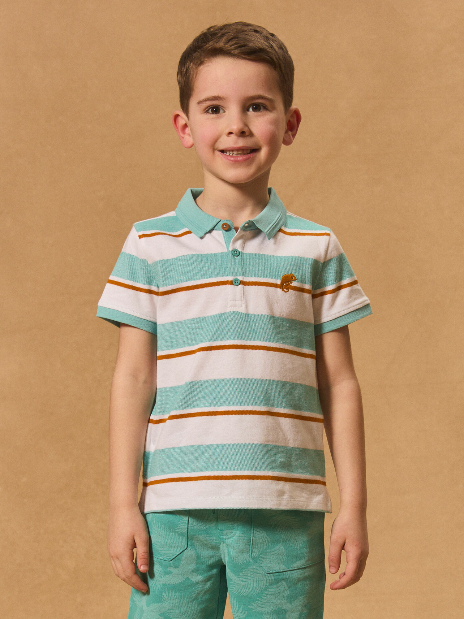 Référence MLERAYAGE 2 / 25E3PGT3POL001. Bord côte au col et bas de manches. Ouverture devant avec trois boutons. Broderie poitrine caméléon. Intégré à la collection Robes & Polos. Pour plus d’informations sur ses qualités environnementales, consultez la fiche produit dédiée en cliquant ICI.