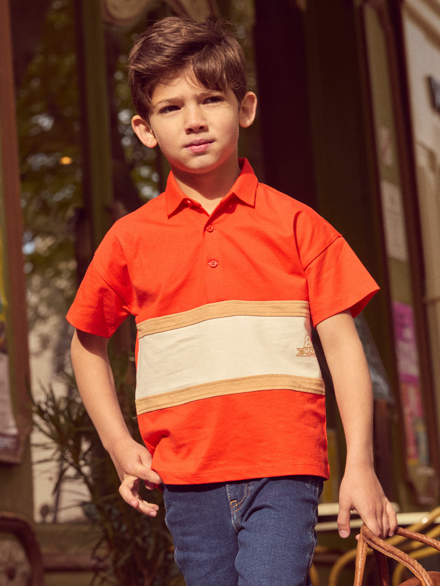 Conçu pour les enfants actifs, ce polo rouge et blanc à rayures marron séduit par sa coupe classique et sa douceur au porter. Les bandes beige et blanche sur l’avant dynamisent le design tandis que l’ouverture à trois boutons facilite l’enfilage. Parfait pour les journées ensoleillées, il s’intègre facilement à toutes les tenues de la collection Balade Au Marché.